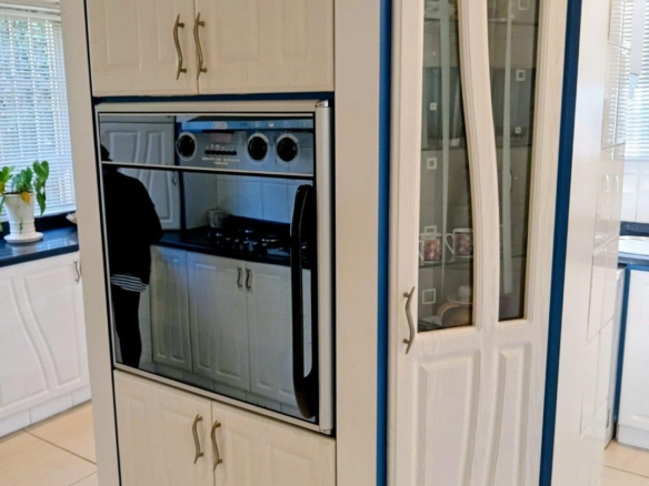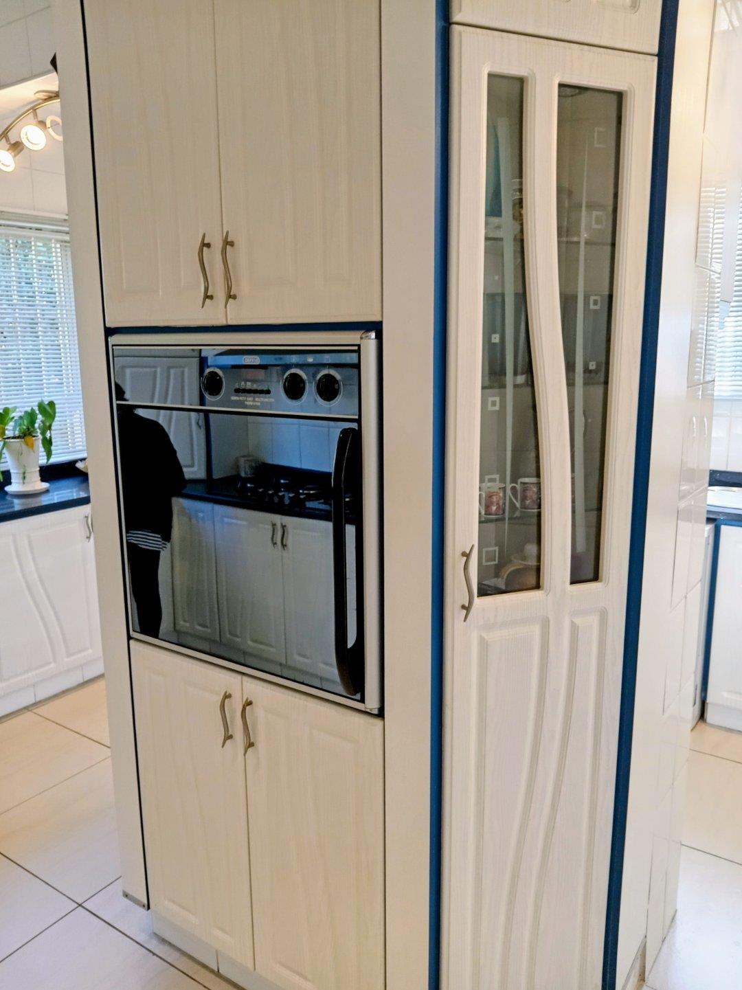 Large wrap-around granite top kitchen with eye-level oven , hob, and Gas stove.