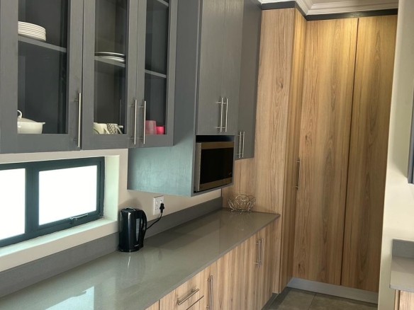 Boasting 4 spacious bedrooms, all featuring built-in cupboards, and 4 bathrooms, this property ensures both privacy and convenience for the entire family. The open-plan lounge and dining area, fitted with air-conditioning, creates a welcoming flow, ideal for family living and entertaining.