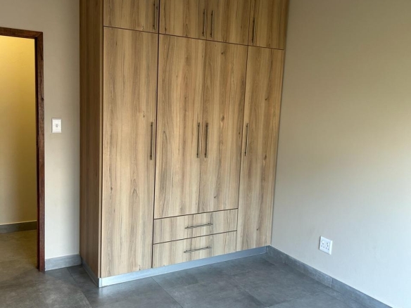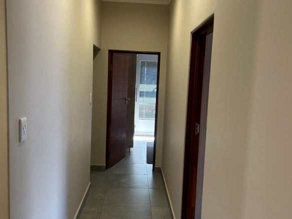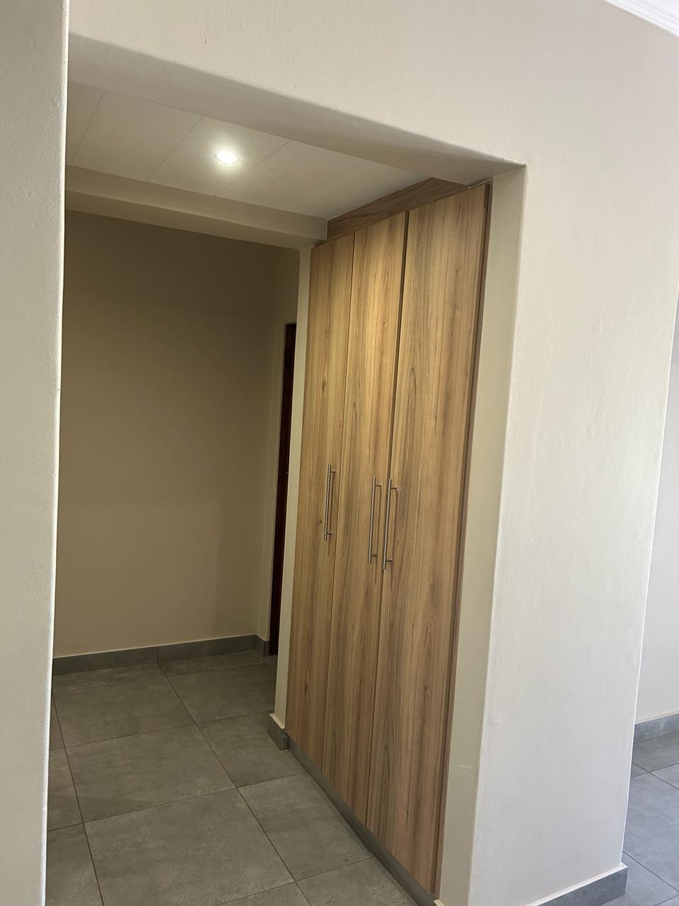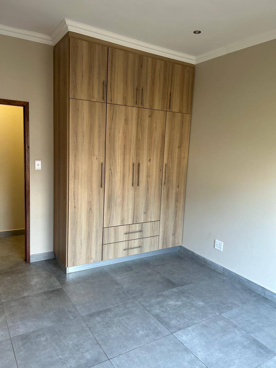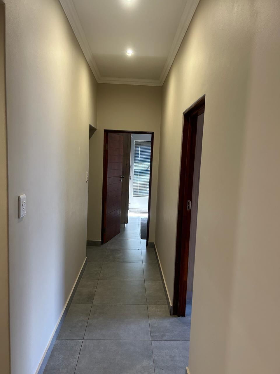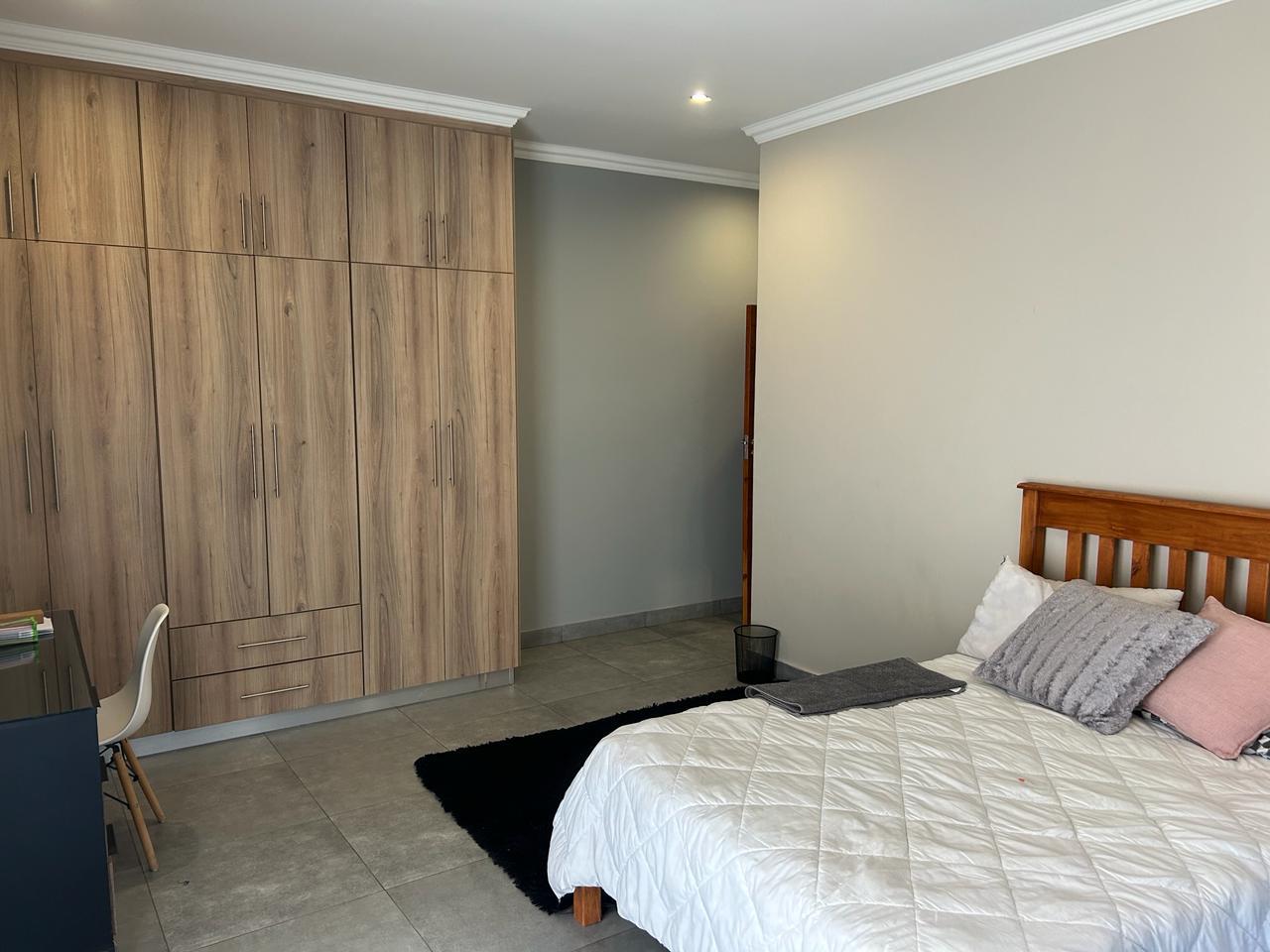 At the heart of the home lies the modern kitchen, complete with a scullery for added practicality, designed to cater to both everyday use and special occasions. The living area extends seamlessly to a built-in braai area, perfect for relaxed weekends with friends and family.