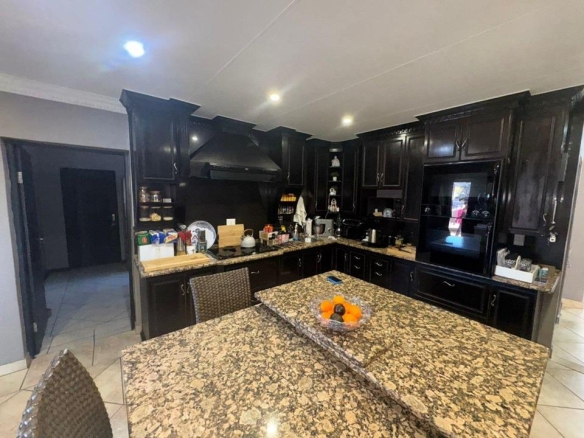Step inside and you’ll find a spacious and inviting living area that is perfect for entertaining guests or simply relaxing with the family. The open-plan design seamlessly integrates the living, dining, and kitchen area, creating a bright and airy space that’s perfect for both large gatherings and intimate moments. The kitchen is a chef’s delight, with granite tops, ample workspace, and plenty of storage, set in a modern dark wood design. Not to mention the breathtaking indoor pool and entertainment room!