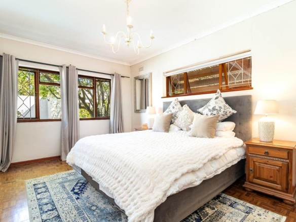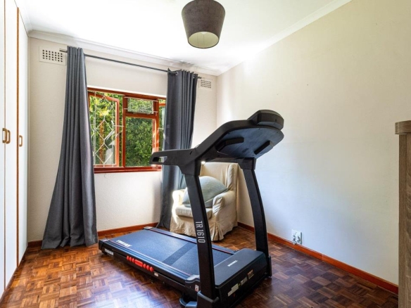 The lounge and dining room open onto North facing patio with built-in braai and large swimming pool. This is great for relaxation and watching sport while braaiing. Oakridge is a great zoning area for excellent schools and close to many parks and shopping centres.