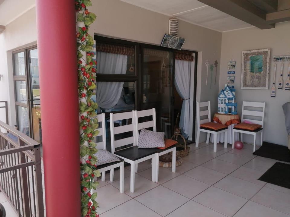 Built-in braai upstairs and smaller stove downstairs, North facing U- shaped balcony, Alarm, Grey water tank, ample parking space, Low maintenance garden, Small storeroom