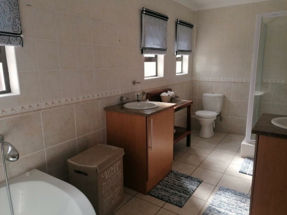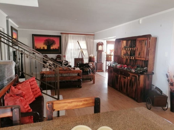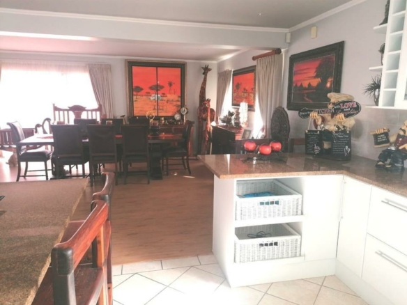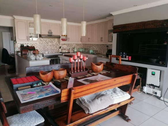 (for at least two cars/boats/trailers, etc) with direct access into the house and a second extended garage at the rear of the property, accessed via a separate entrance (servitude). This garage is currently being utilized as a workshop, which has space for a larger vehicle, boat, or caravan.