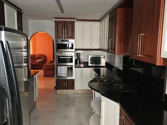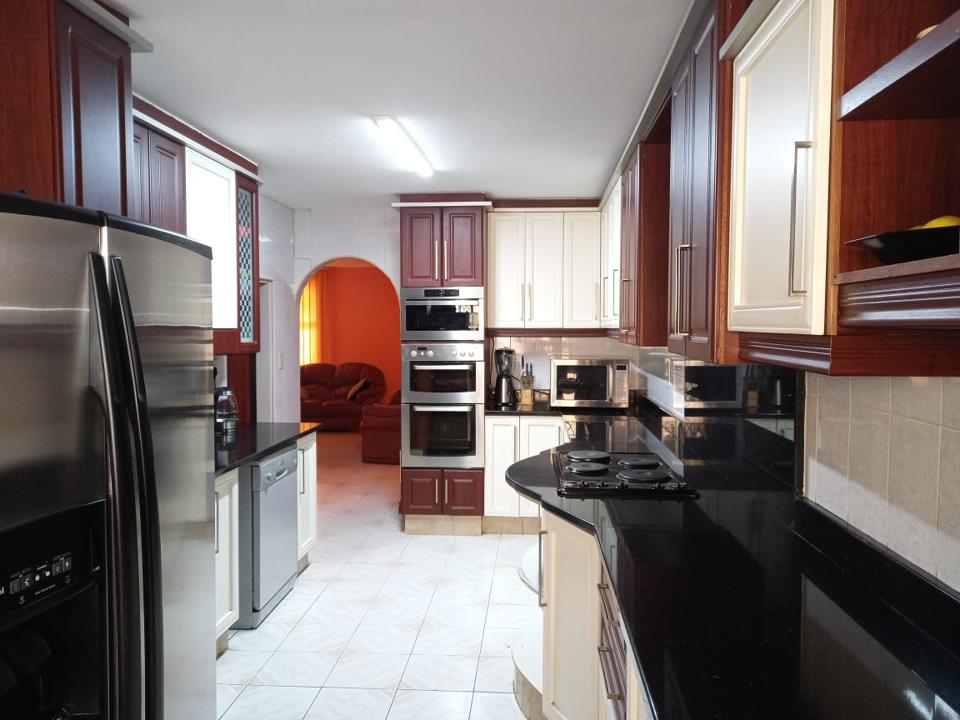 A beautiful kitchen with a double oven and bonus fitted microwave