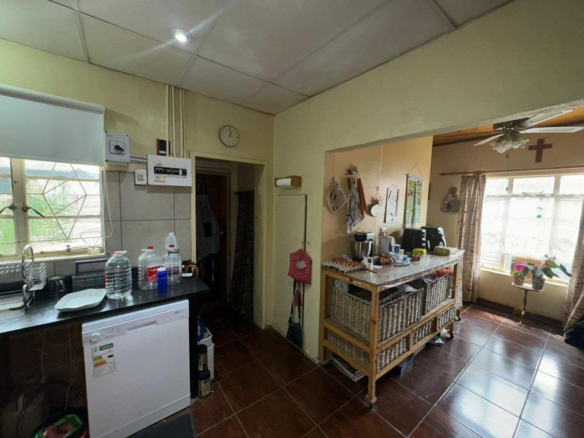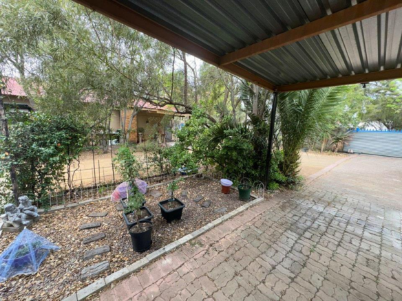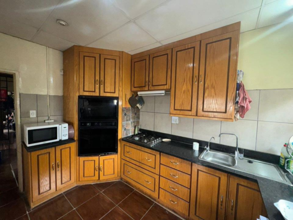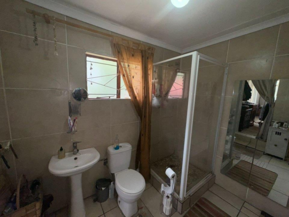 The kitchen is equipped with a built-in gas stove, electric oven, and stunning granite countertops. Ample storage is provided by the separate pantry and clever corner grocery cupboard. Outside, you’ll find undercover parking for three vehicles, with an additional parking spot allocated to the bachelor flat—perfect for generating extra income, currently earning R2200 per month.