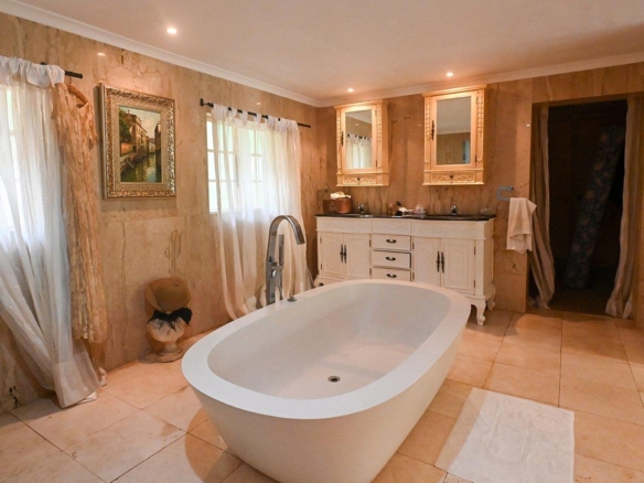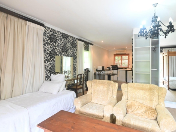 The main house boasts generous proportions, ideal for a large or extended family. With 4 bedrooms and 4 bathrooms (3 en-suite), space and privacy are guaranteed. Two luxurious, executive-style suites each enjoy their own private verandas and kitchenettes — ideal for guests or Airbnb opportunities.