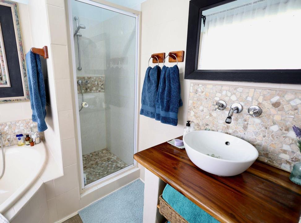 The property boasts four generously sized bedrooms, each thoughtfully designed to offer privacy and relaxation. The master bedroom is a serene retreat, complete with an en-suite bathroom and sea views that greet you every morning. The second bedroom and third bedroom are also downstairs. The additional fourth bedroom is upstairs in a loft area and shares access to one full bathroom, ensuring convenience and comfort for everyone.