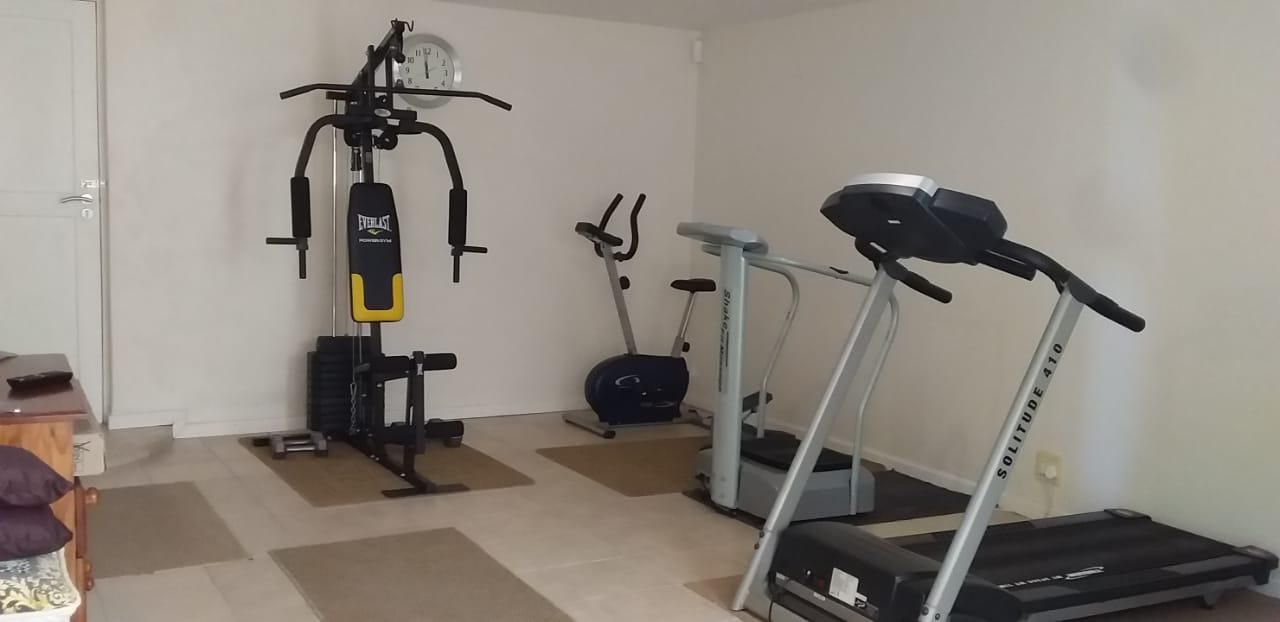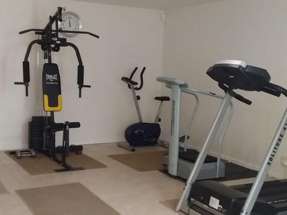 There is a separate room for a home gym which leads out to an outside undercover room for laundry on rainy days.
