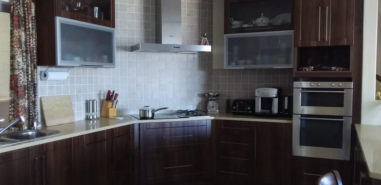 A Well designed and modern open-plan kitchen leads you to the dining room which has panoramic views of the whole Saldanha and the sea. The kitchen leads to the laundry and scullery.