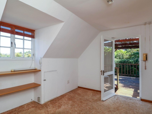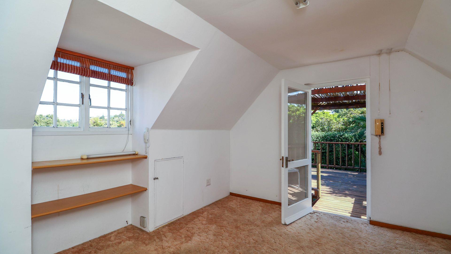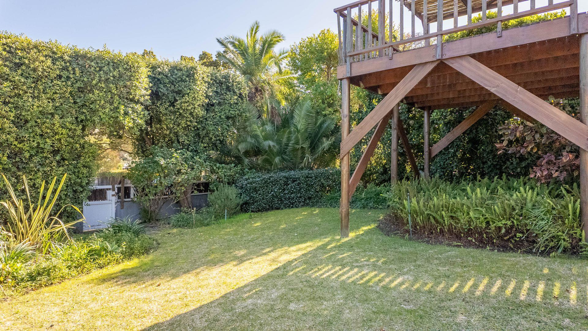 Above the garage is a one bedroom loft apartment for a teenage pad, work from home office space or art studio complete with its own electric meter. This independent space comes with a wooden viewing deck reaching views all the way up the valley and towards Robberg Reserve providing a pleasant spot to enjoy the mature trees and surroundings in privacy. This space is a useful addition for guests or as a separate income producing rental.