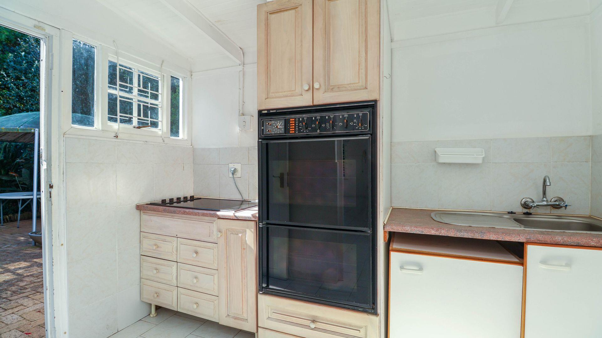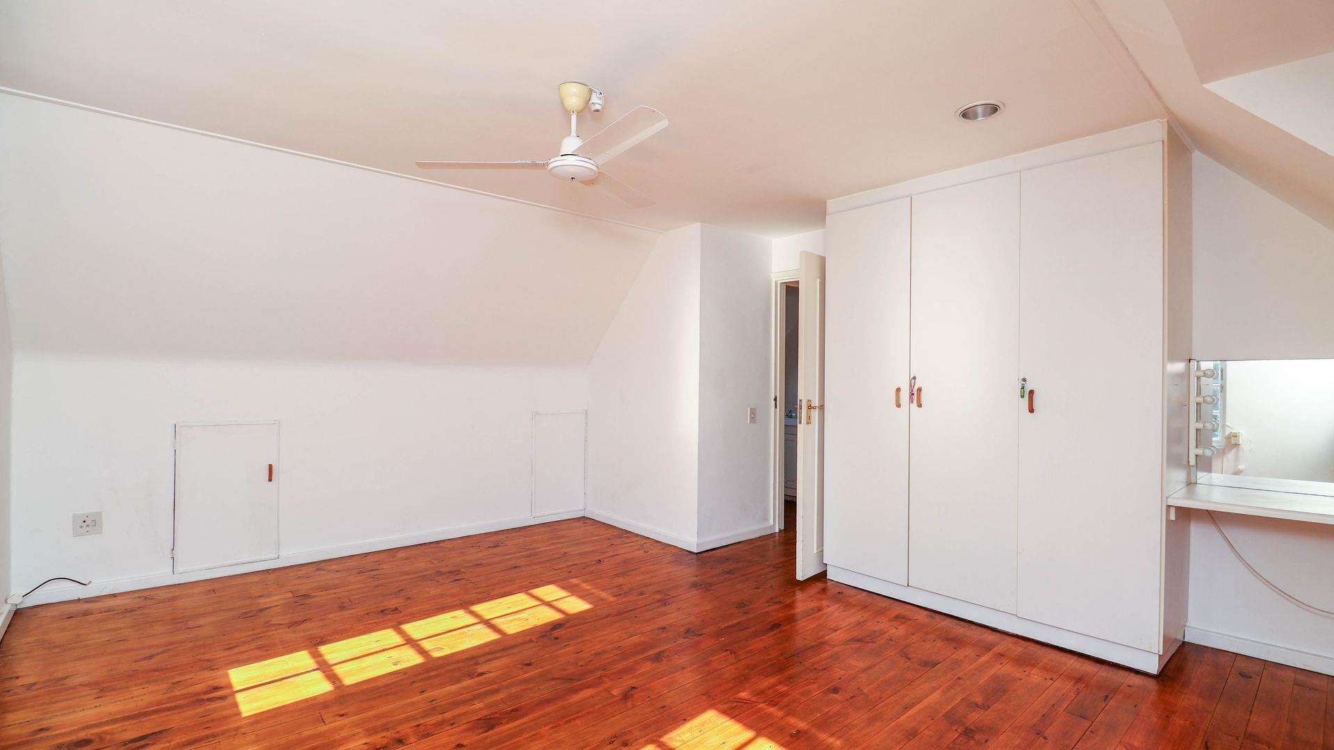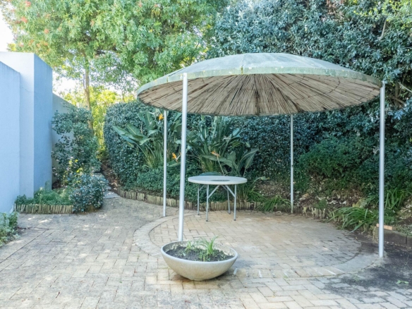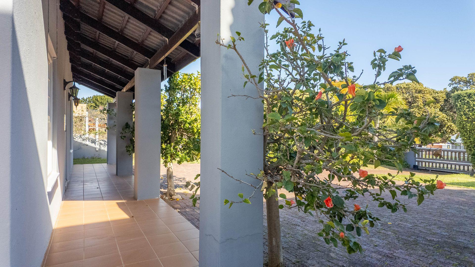 Above the garage is a one bedroom loft apartment for a teenage pad, work from home office space or art studio complete with its own electric meter. This independent space comes with a wooden viewing deck reaching views all the way up the valley and towards Robberg Reserve providing a pleasant spot to enjoy the mature trees and surroundings in privacy. This space is a useful addition for guests or as a separate income producing rental.