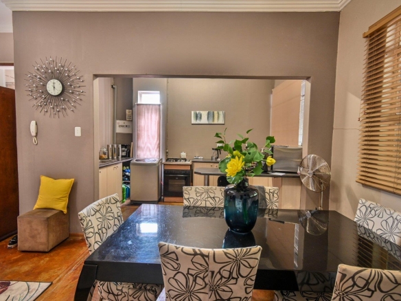 Well kept, low maintenance face brick house with nothing to renovate. The property offers a huge flat in the front with screeded flooring and its own open plan kitchen/lounge which can be utilized as another bedroom. Separate bedroom with built-in cupboards, space for a study table, and with en suite bathroom. The main house has an open-plan living and dining room opening up to a north-facing patio and small landscaped garden. Also adjacent to the newly upgraded kitchen with a beautiful wooden stacking door.