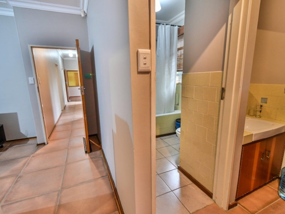 3 Very spacious north-facing bedrooms with built-in cupboards. The main bedroom has its en suite bathroom with ample built-in cupboards. Very practical bathroom use with a separate shower, separate toilet, separate bath and basin, and separate basin very convenient for students.