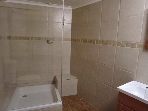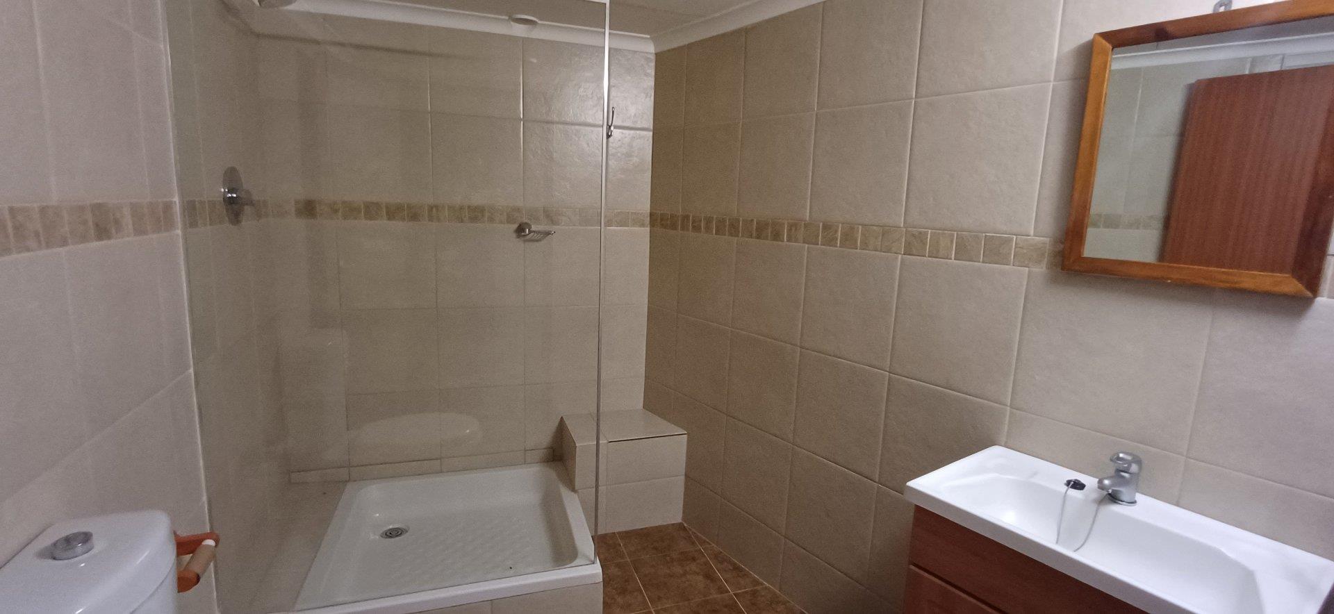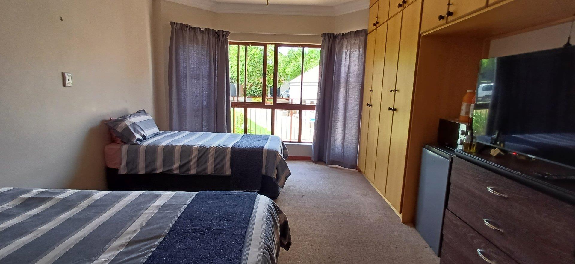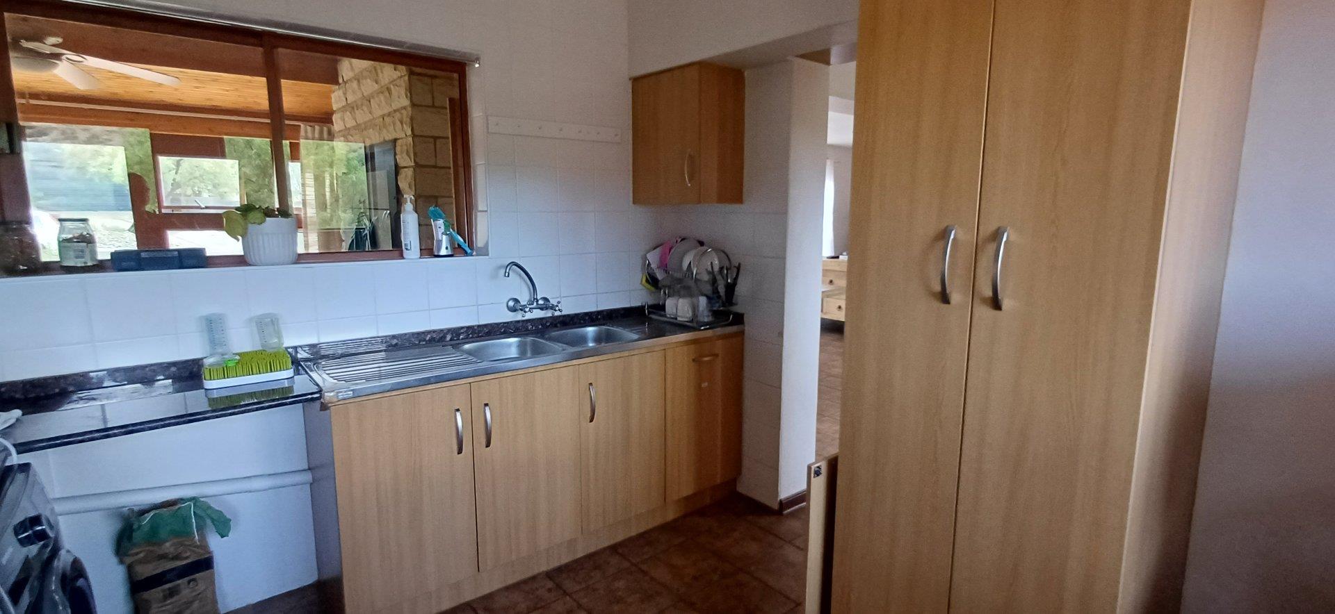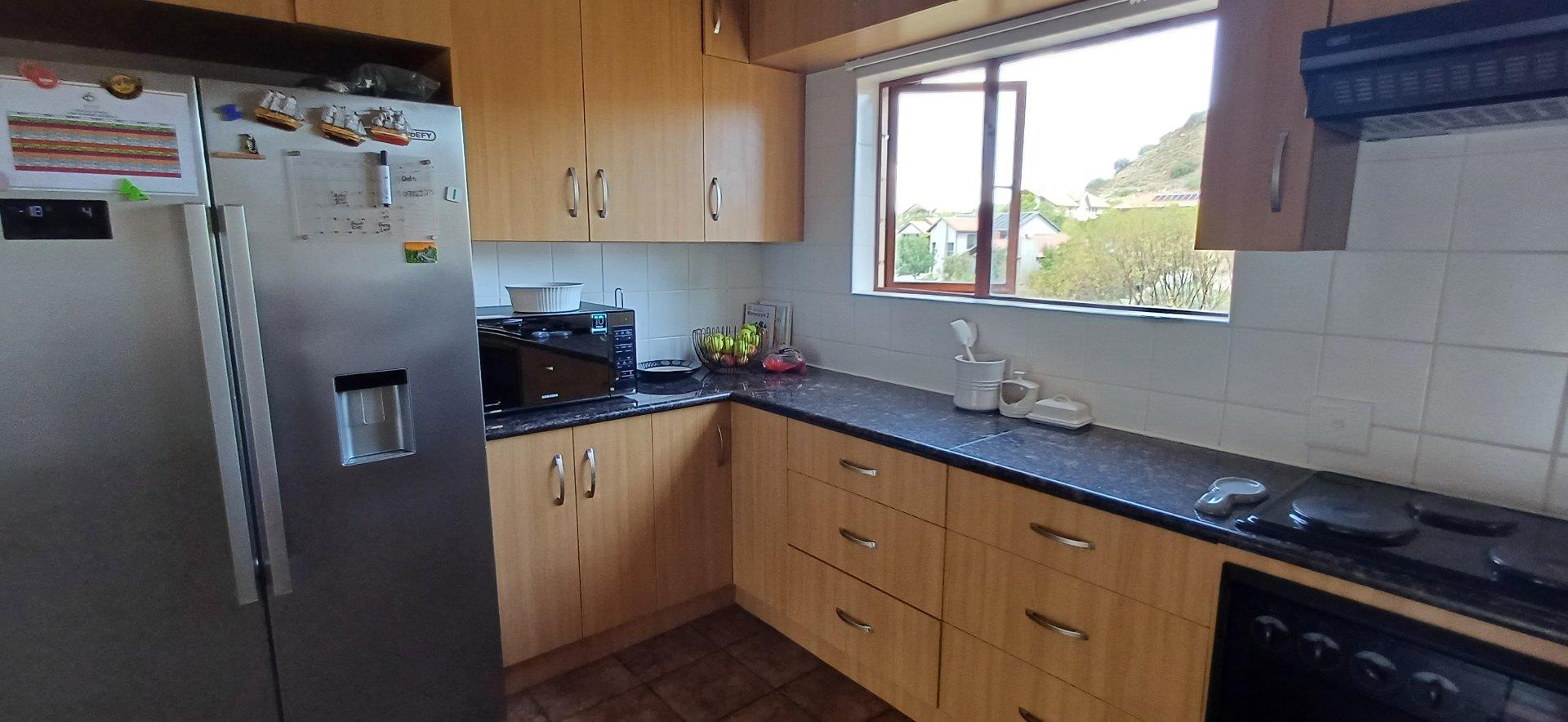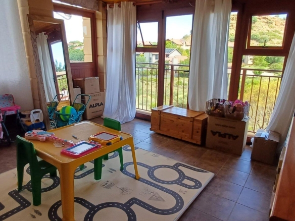 Cozy open-plan living area and a dining area with a fireplace. Big open-plan kitchen and a separate laundry and scullery. It also offers a private braai room with stacked away doors in the garden. Three bedrooms on the first floor and one bedroom on the ground floor. Offers 5 bathrooms. The living area on the first floor is currently used as a room but can also work as a study or another bedroom.