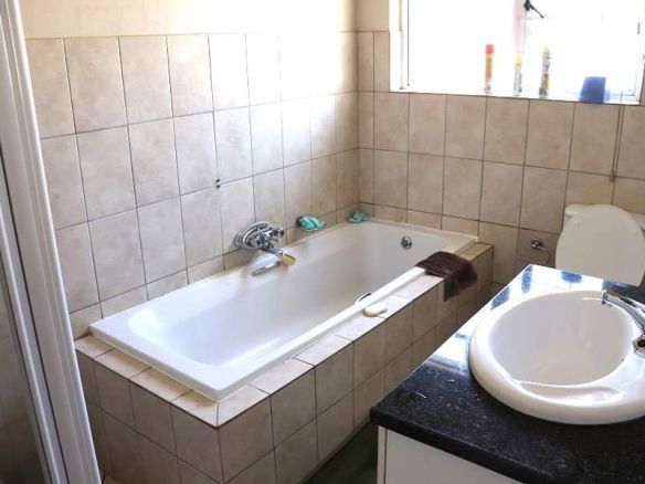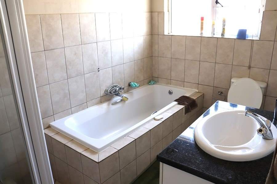The ground floor features a spacious open-plan layout including a kitchen, dining, and living area, complemented by a covered patio—a perfect spot for outdoor relaxation and braai. Upstairs, you’ll find 4 generously sized bedrooms with ample built-in cupboard space. The main bedroom boasts an ensuite bathroom with both a shower and bathtub.