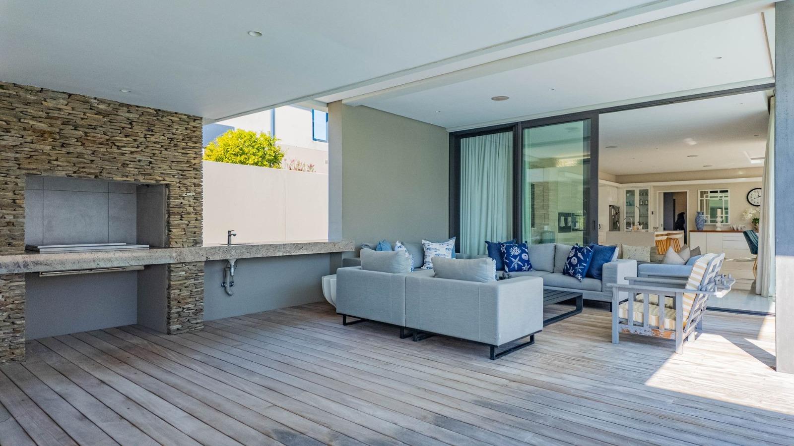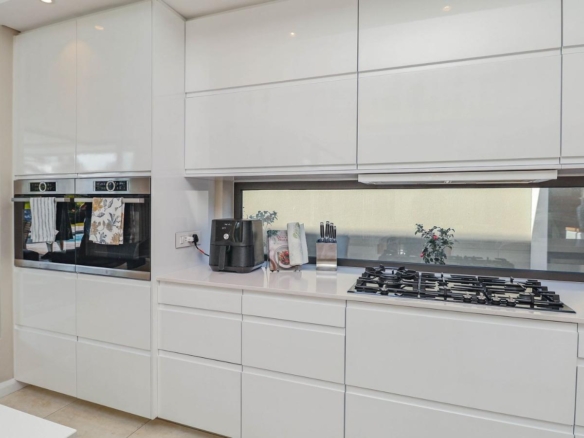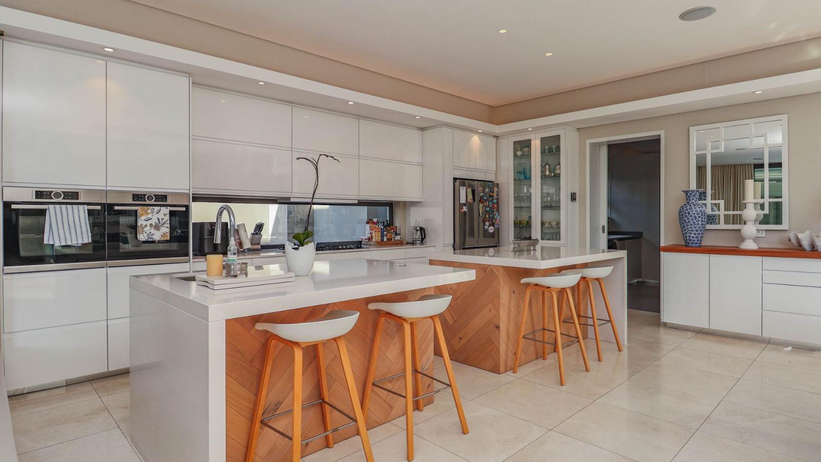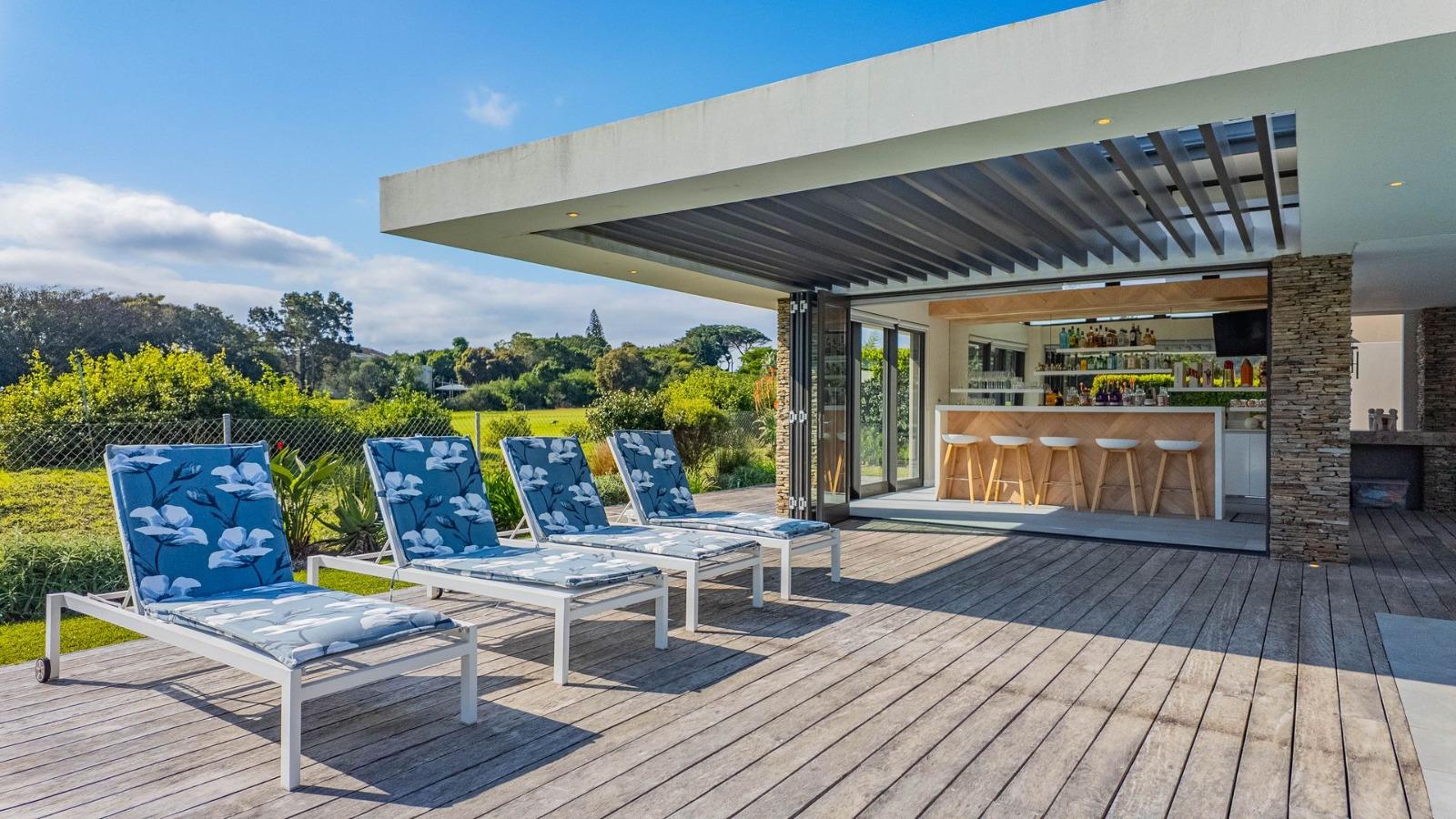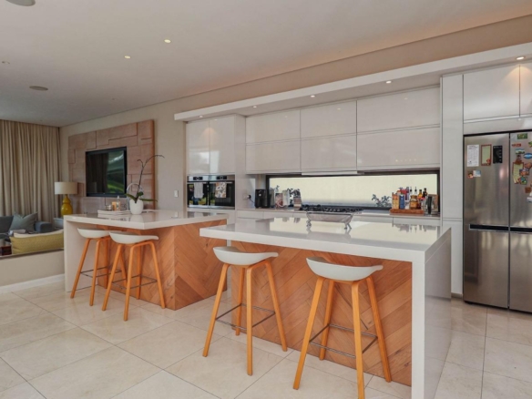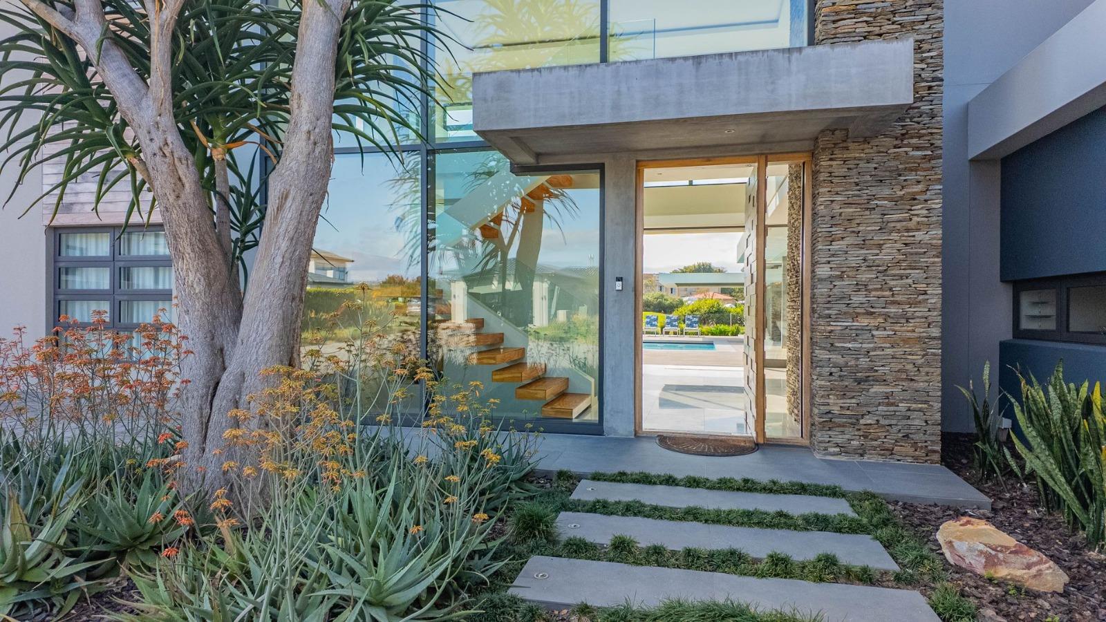 Situated in a breathtaking location, this upmarket home offers a perfect blend of luxury, comfort, and entertainment. As one steps through the large doorway into the welcoming foyer of this luxurious home, you’ll be greeted by double volume open and spacious living areas that boast a modern and stylish design. The high ceilings and large windows allow natural light to flood the space, creating a warm and inviting atmosphere. The living areas seamlessly flow into the dining area and a state-of-the-art kitchen, making it easy to entertain guests whilst preparing or having a sumptuous meal prepared.