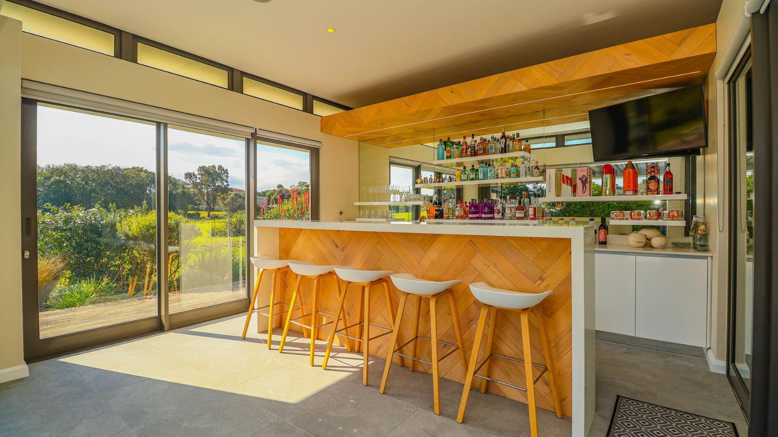 On the lower level is a separate private lounge and a cinema room for those late night popcorn feasts or additional viewing experiences for the young whilst the adults entertain.