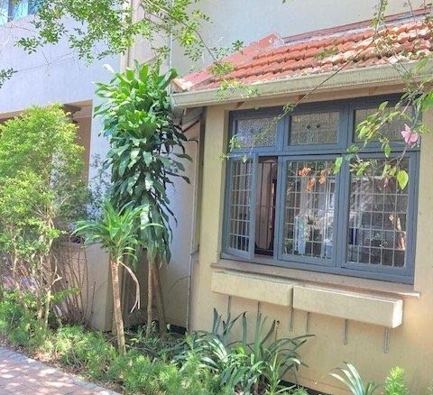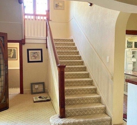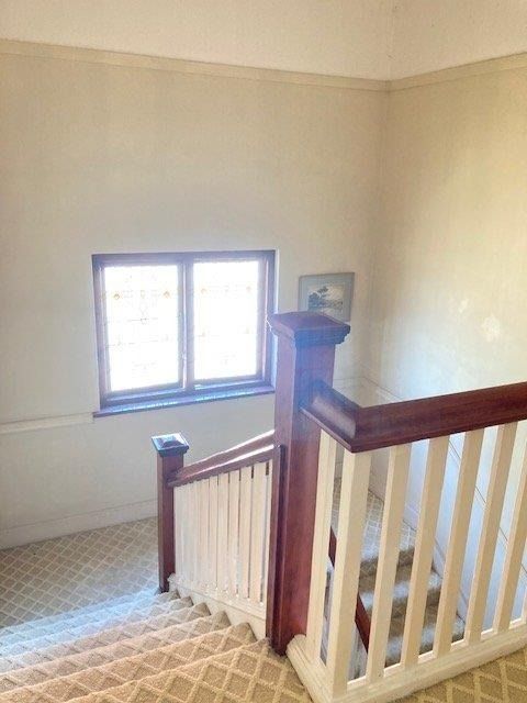 This spacious colonial style house has loads of old-world charm with high ceilings, stained glass windows and feature fireplace. It is a double story house with wooden banister staircase leading up to 4 bedrooms all with en-suite bathrooms The main bedroom has a massive bathroom with a feature Victorian bath and twin basins.