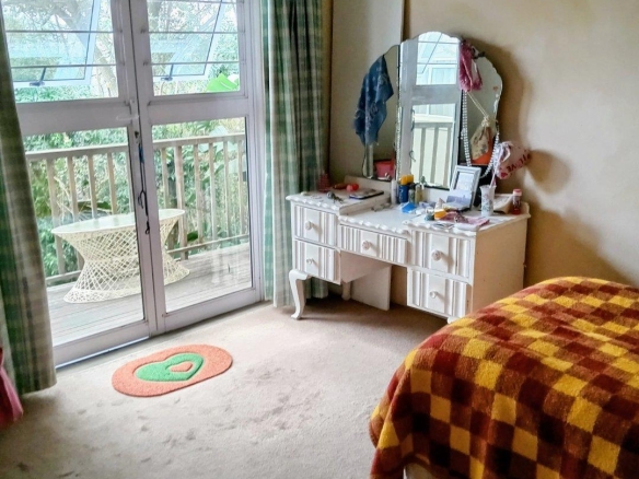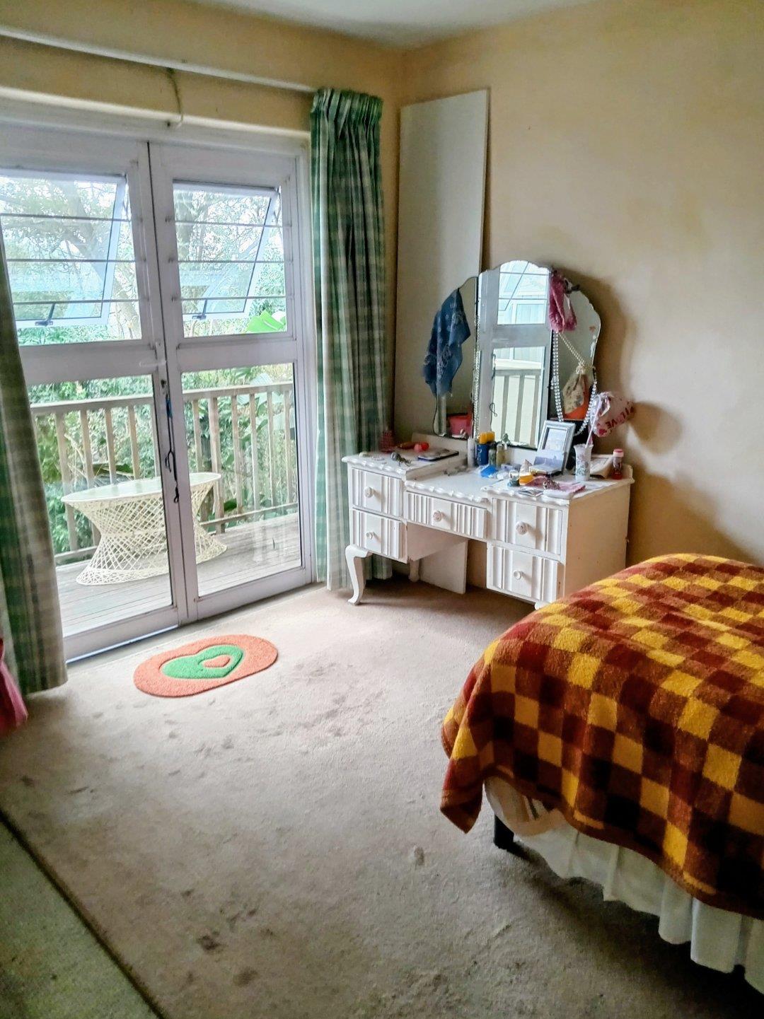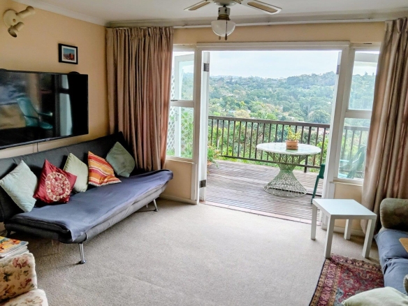 This flat has a separate deck and entrance from the outside via steps down the side of the garage.