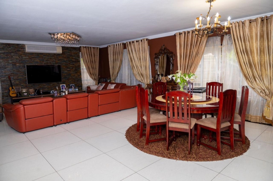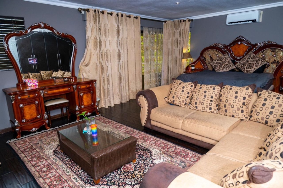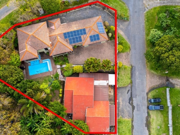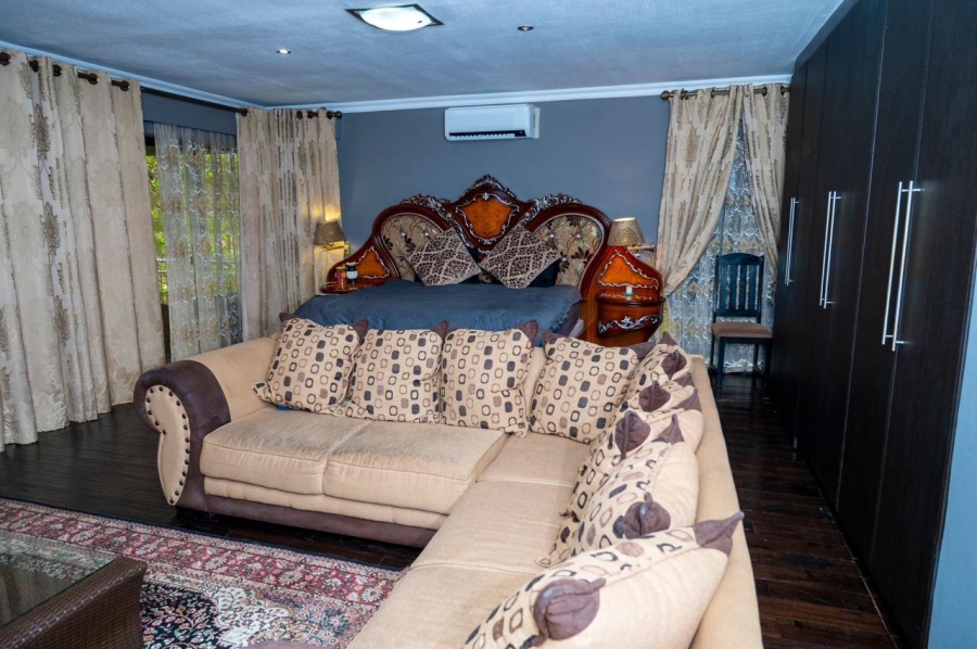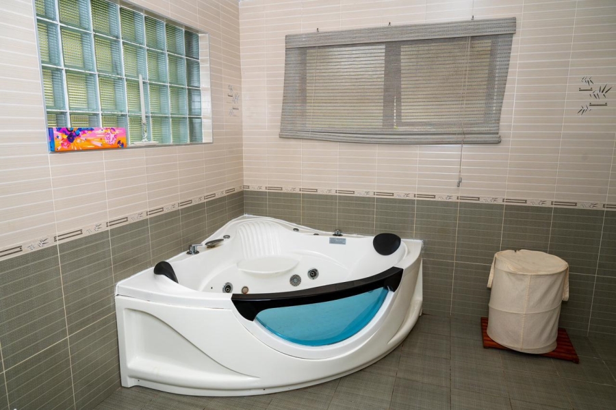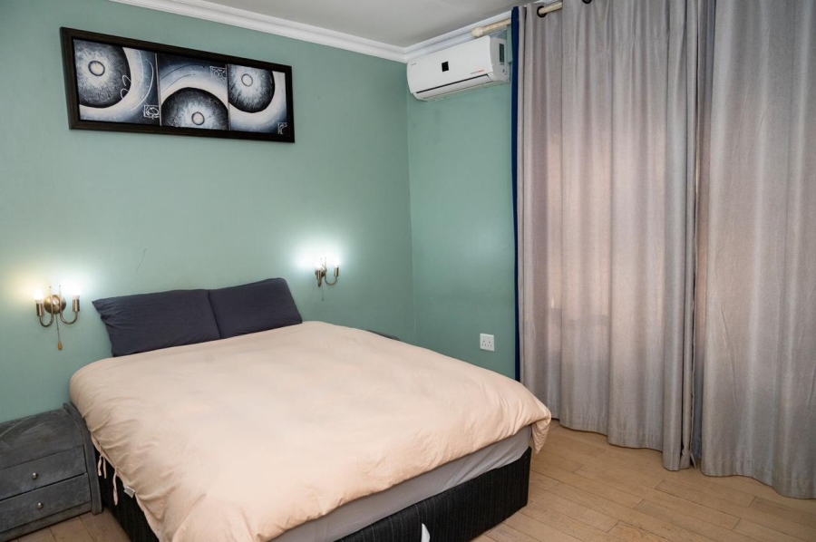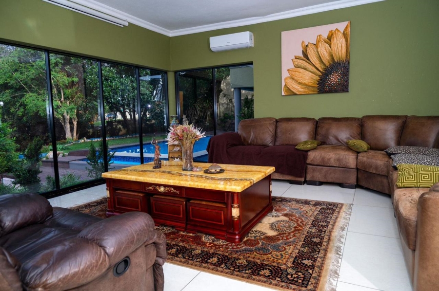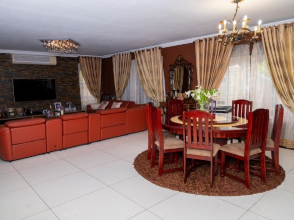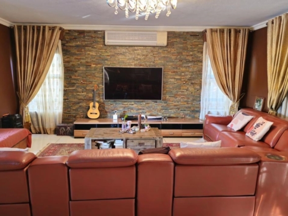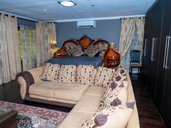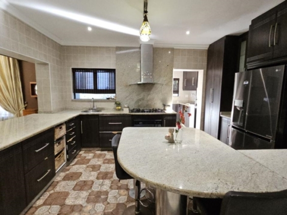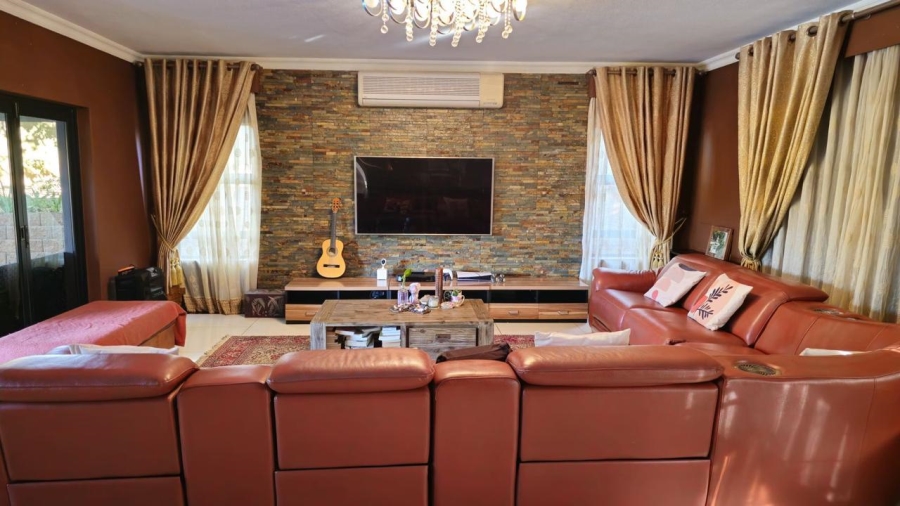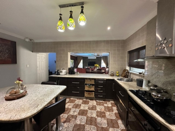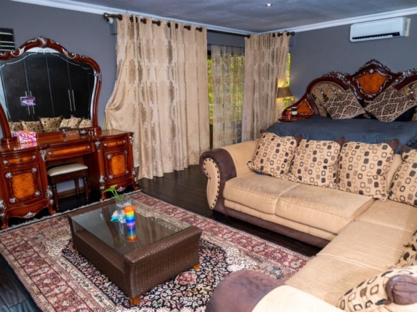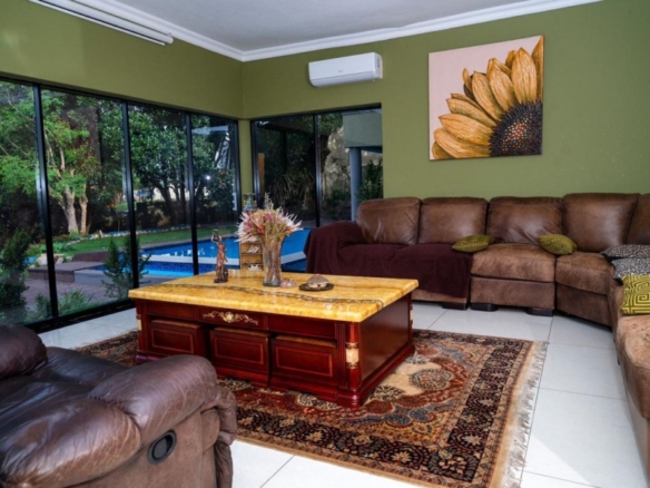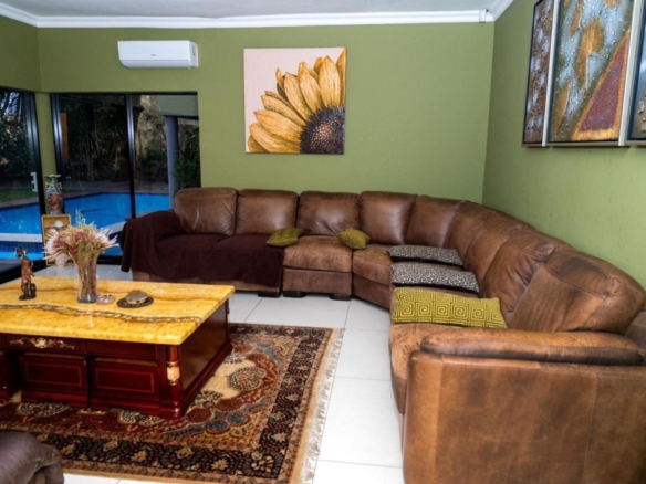 This stunning 5-bedroom home is ideally positioned on a desirable corner plot in a tranquil neighborhood, just a short walk from the local high school. Combining timeless elegance with eco-conscious living, it’s fully off-the-grid with solar power and a borehole water system. The expansive driveway and double garage offer ample parking, while the picturesque pool area is perfect for outdoor relaxation and entertaining. Inside, the open-plan living and dining areas flow effortlessly into a spacious kitchen with modern amenities. A second lounge with a pull-down projector screen opens to the pool, enhancing the indoor-outdoor experience. The main floor includes three large bedrooms, including a guest room with an en-suite. Upstairs, the luxurious master suite features a full bathroom and private balcony overlooking the pool. The property also includes a separate building with office space, ideal for a small business. Fully furnished as an optional extra, this exceptional home offers the ultimate in sustainable living. Schedule your viewing today!