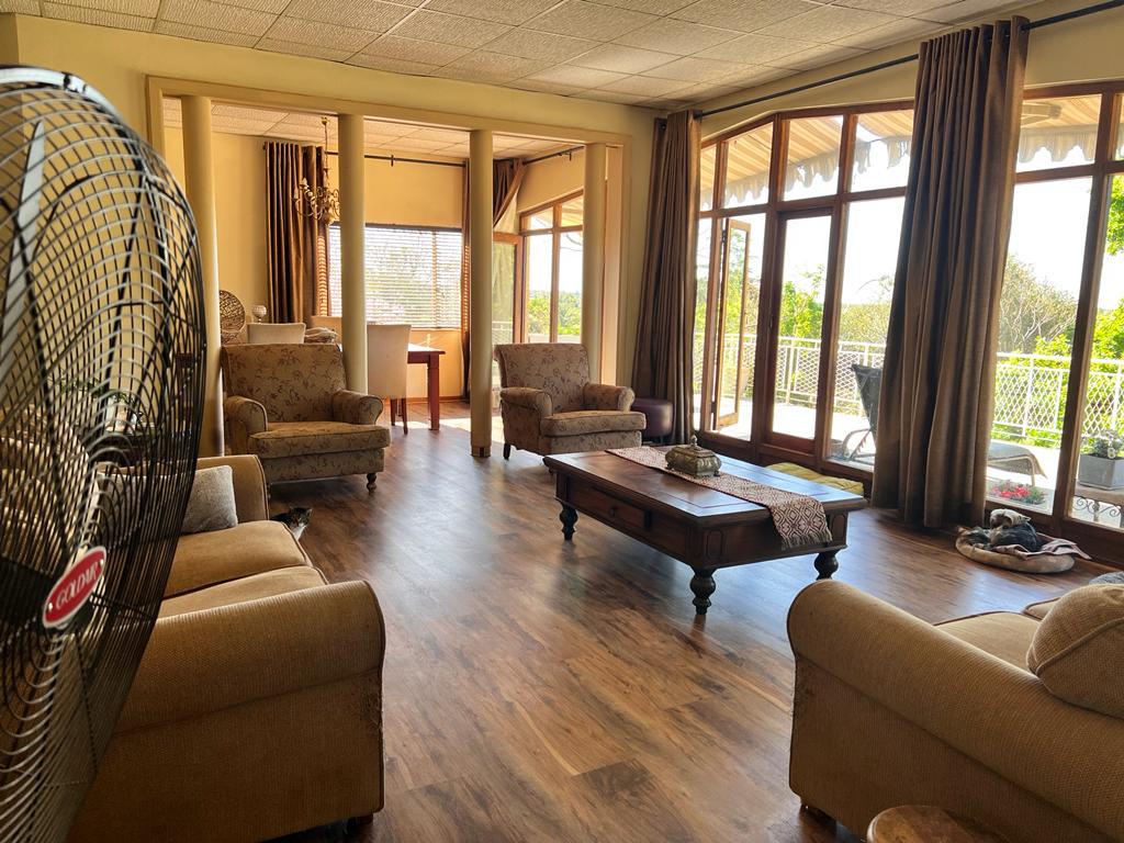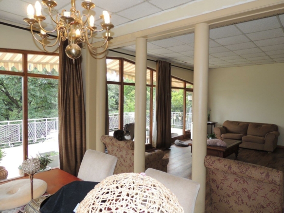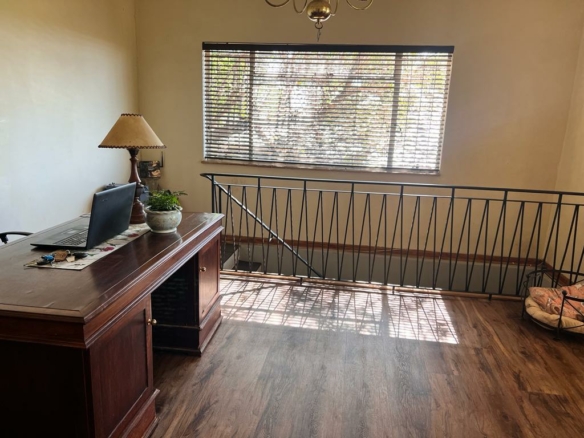 Downstairs you will find a huge entertainment room with a guest bedroom. This could also work as an office or give a business opportunity. Outside is a stunning swimming pool hidden inside a lush tree-filled garden. There is also an outside room with a bathroom as well as a separate store room and dressing room for the pool. All this is bound together by the beautiful balcony where you can enjoy sundowners and morning coffees. This home truly is the space that you would want to call home.