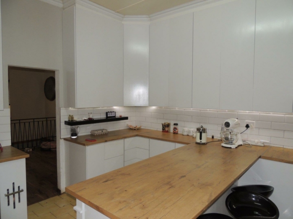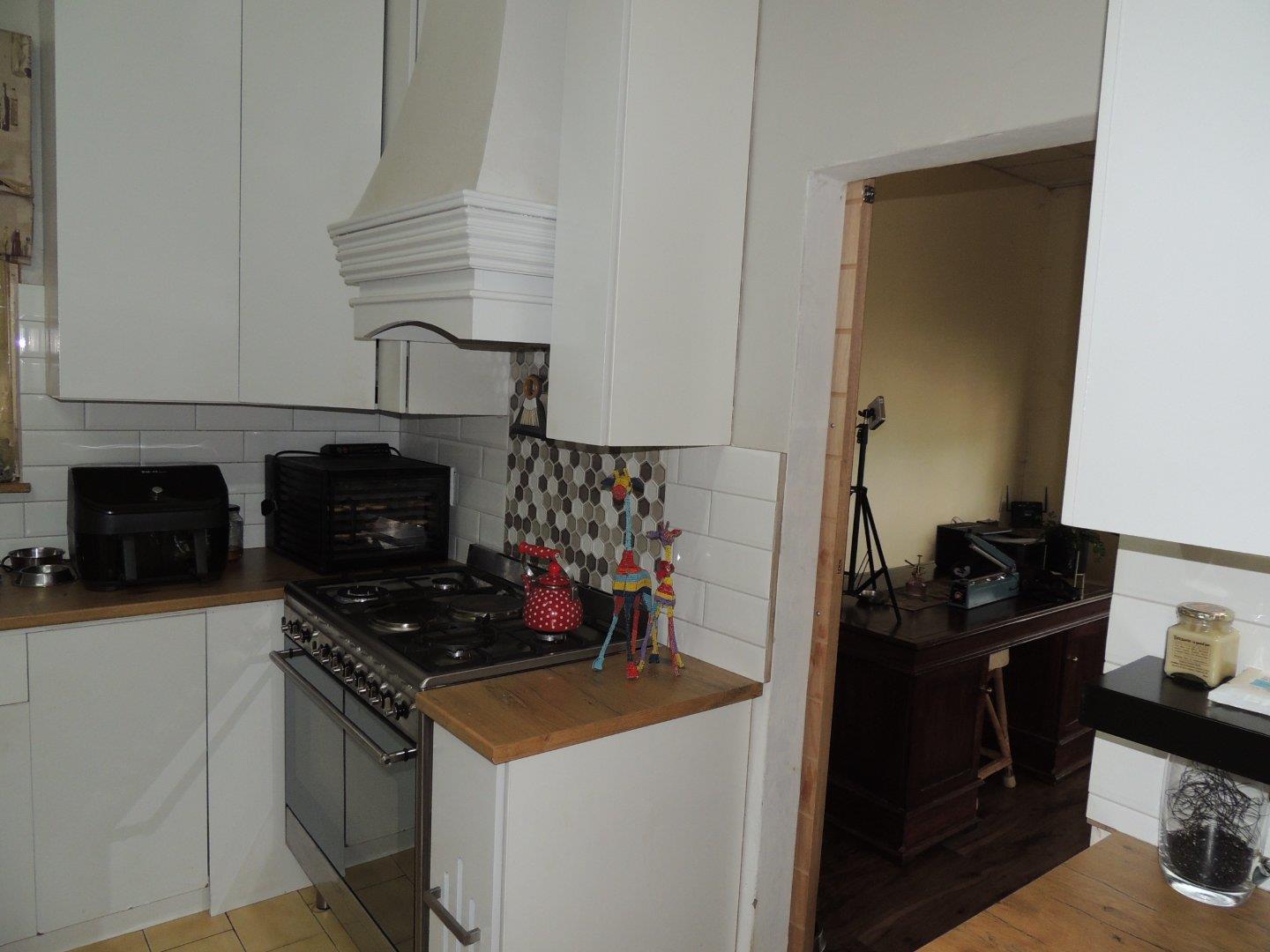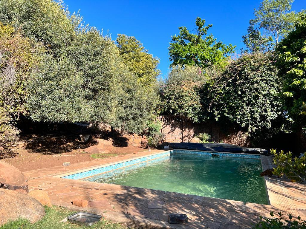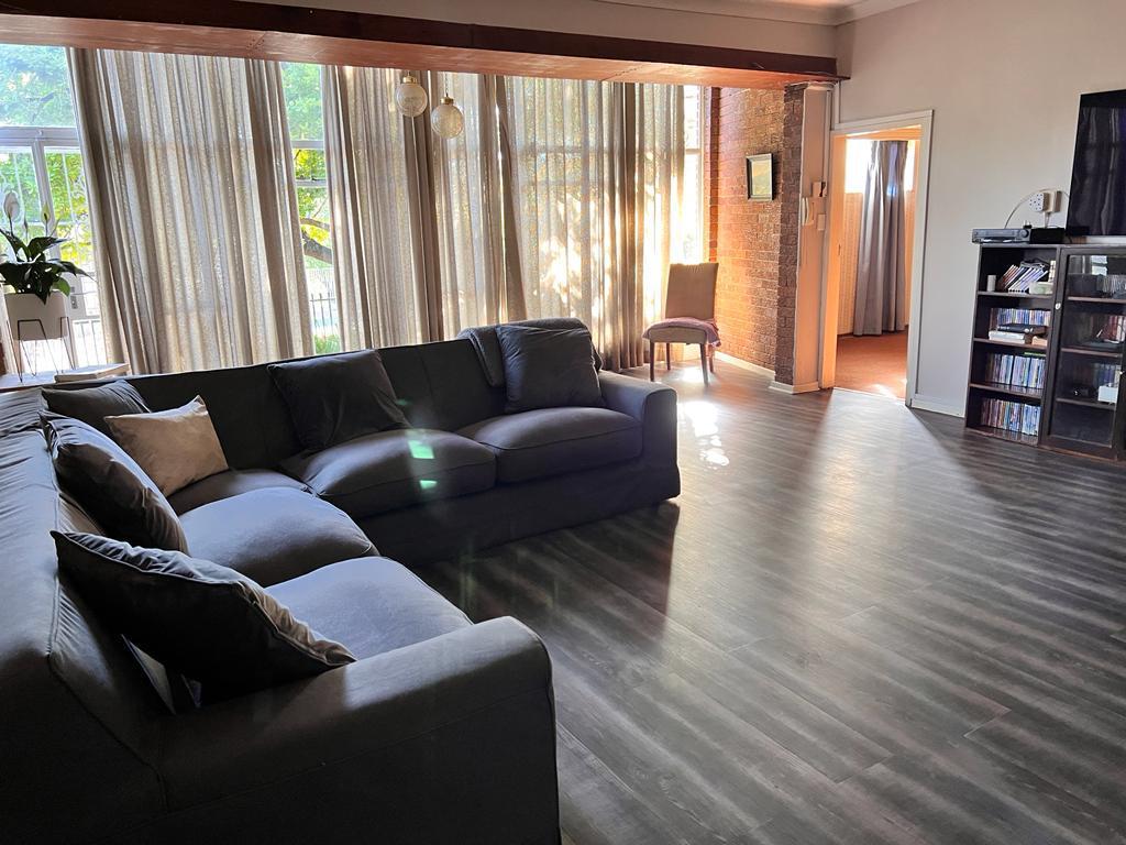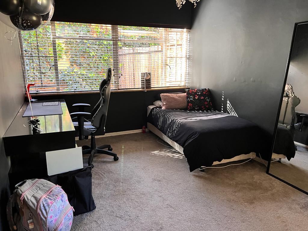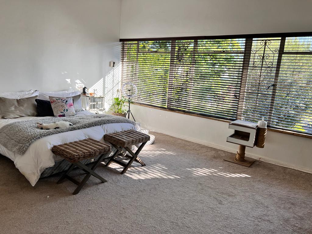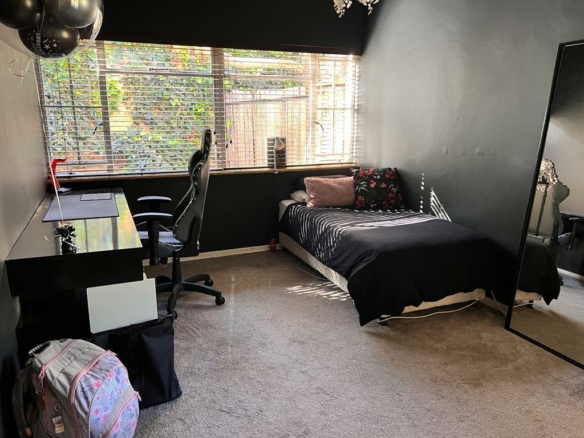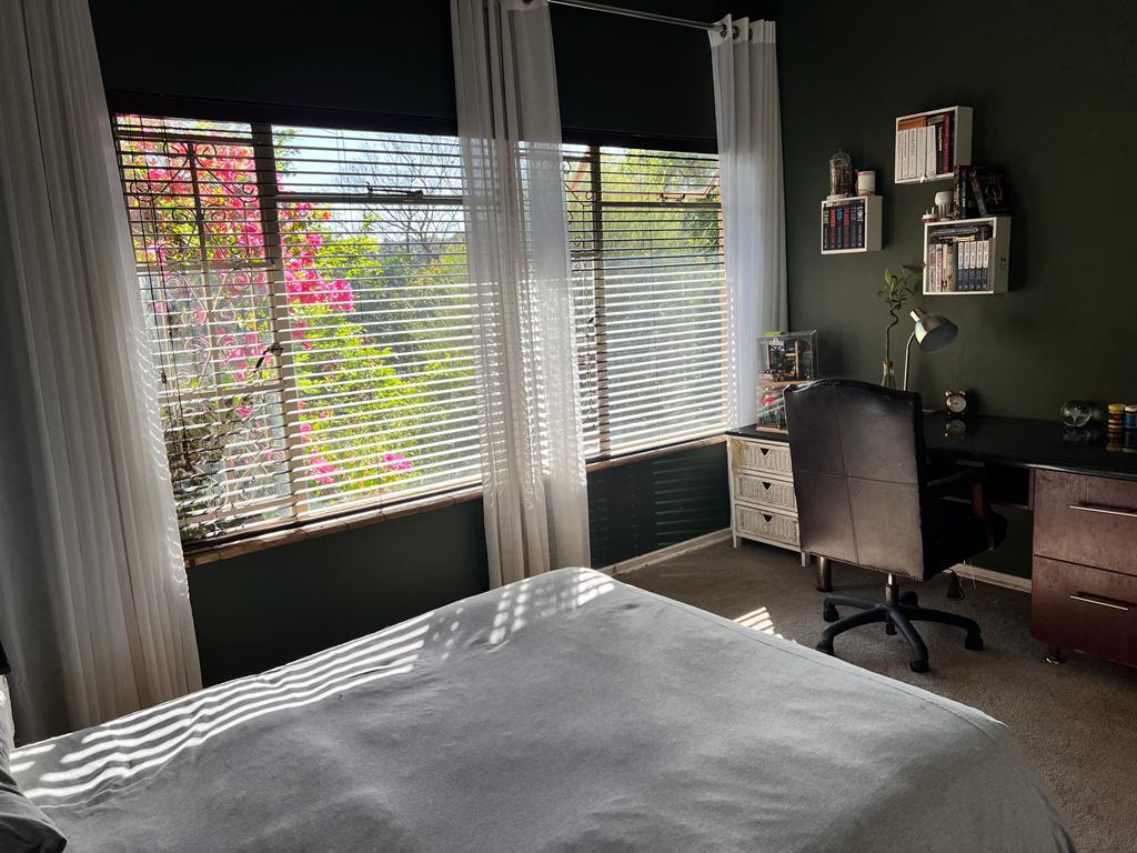 This intricately designed family home sits perfectly in a tree-filled garden a stone’s throw from Oranje Meisie school. The home offers open-plan living at its finest with a lounge and dining room with beautiful views out of the ceiling-high windows. The modern flow of this home is welcoming and warm as it leads you from the living spaces into the kitchen. The kitchen is a design marvel with wooden tops, a farmhouse sink, and mat black faucets. Leaving you with a lot of workspaces and a handy scullery. The home offers four bedrooms, all neatly carpeted with built-in closets. But the master suite is something to behold, with enough space for a king bed, and garden views that give rest to the busiest of souls. An en-suite bathroom completes the picture.