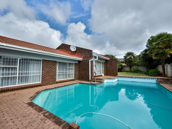 Step into luxury living with this exquisite family home nestled in the prestigious Universitas Ridge suburb. As you enter, you are greeted by a formal lounge exuding sophistication, seamlessly leading to an expansive entertainment room through sliding doors. Hosting gatherings becomes a delight with the built-in braai, while the panoramic view of the mesmerizing sparkling blue pool adds to the allure. Adjacent to the formal lounge, discover the cozy yet spacious family room, perfect for intimate gatherings or leisurely relaxation. The carpeted dining room, harmoniously connected to the kitchen, invites culinary adventures and memorable family meals. The kitchen boasts ample built-in cupboards and a separate scullery, ensuring both functionality and style.