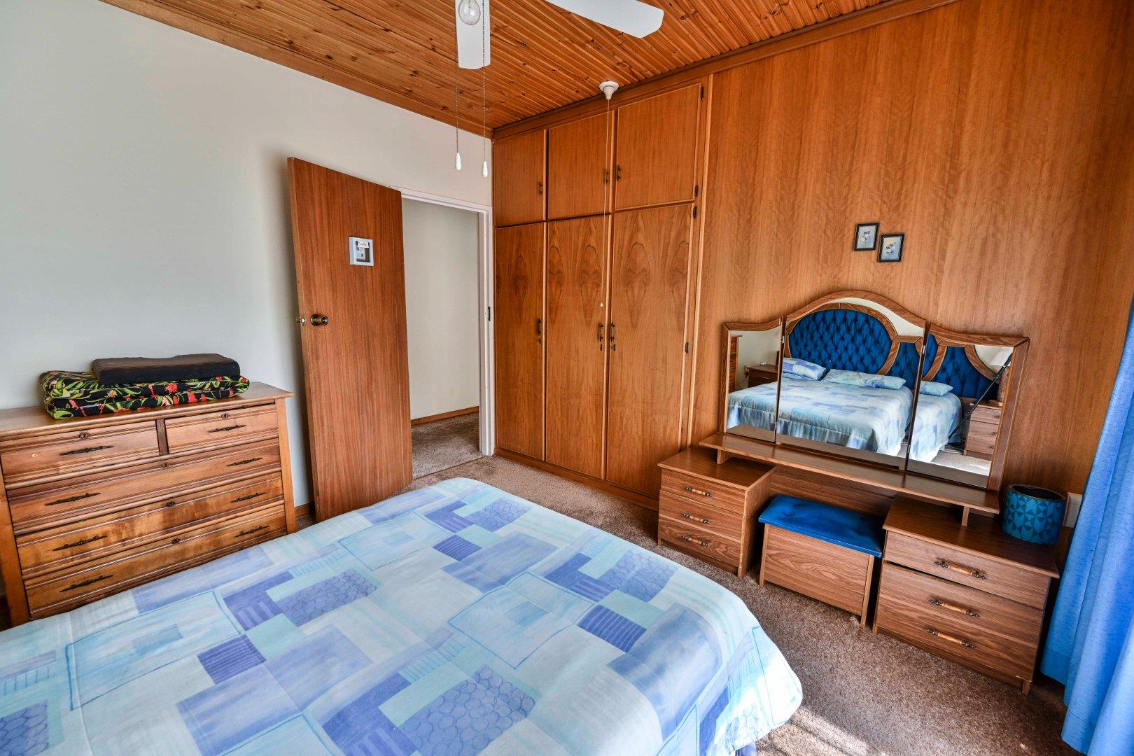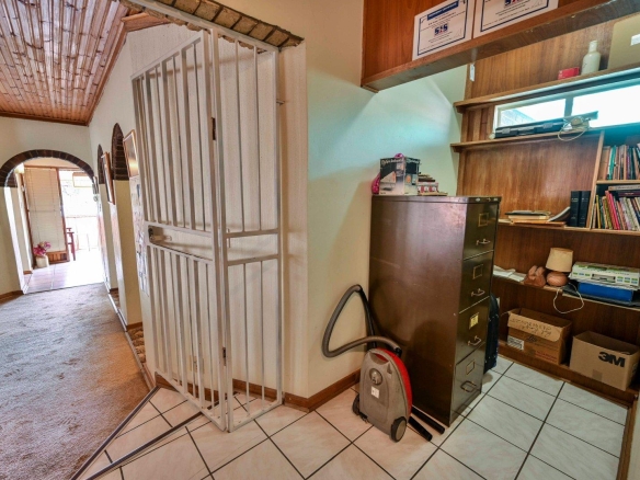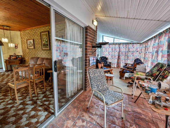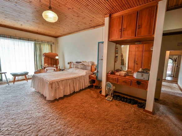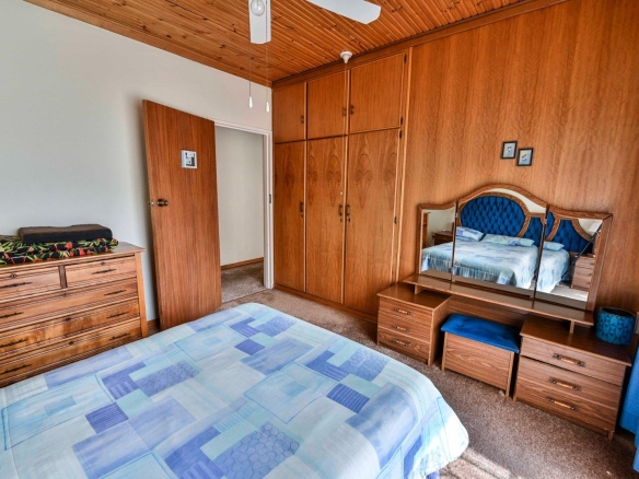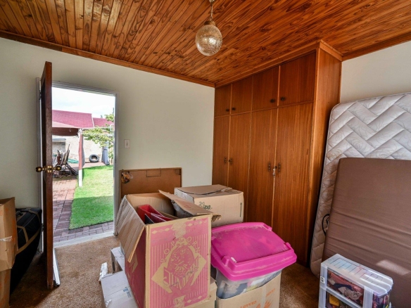 Upon exploration, to the left of the entrance, find a versatile space ideal for an office or storage. Continuing through, the home unveils its sanctuary of comfort with four generously sized bedrooms, all adorned with plush carpeting. The master suite stands out with its extra spacious layout, complete with a dedicated TV port and a full en-suite bathroom. Additional amenities include a second full bathroom complemented by a separate toilet, catering to the needs of the entire household. Outside, the expansive backyard beckons with its charming paving, flourishing fruit trees, and a standalone storage room.