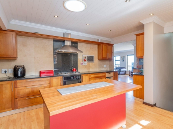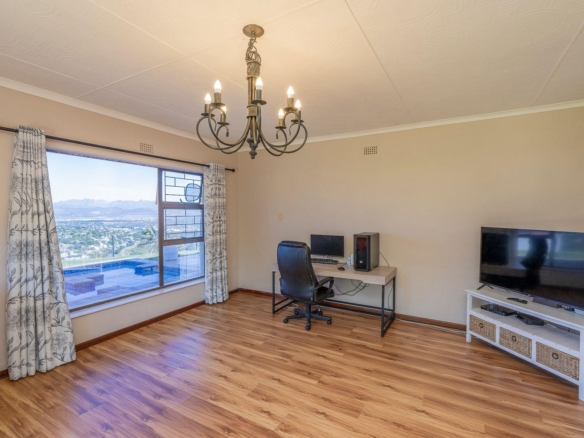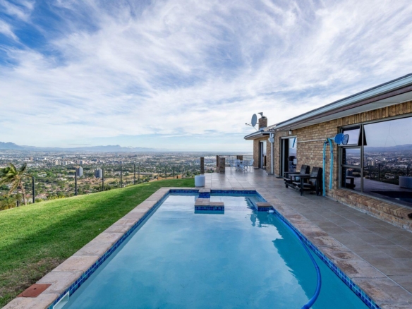 All the living areas are spaciously laid out and the bright large windows are making sure you don’t miss anything about the magnificent views. Whether it’s the mountains from the one room, or the ocean from another room or the city from another. The Home is also graced with a large enclosed Braai room that leads onto the open patio with a swimming pool and jacuzzi combination and where the immaculate views will captivate you.