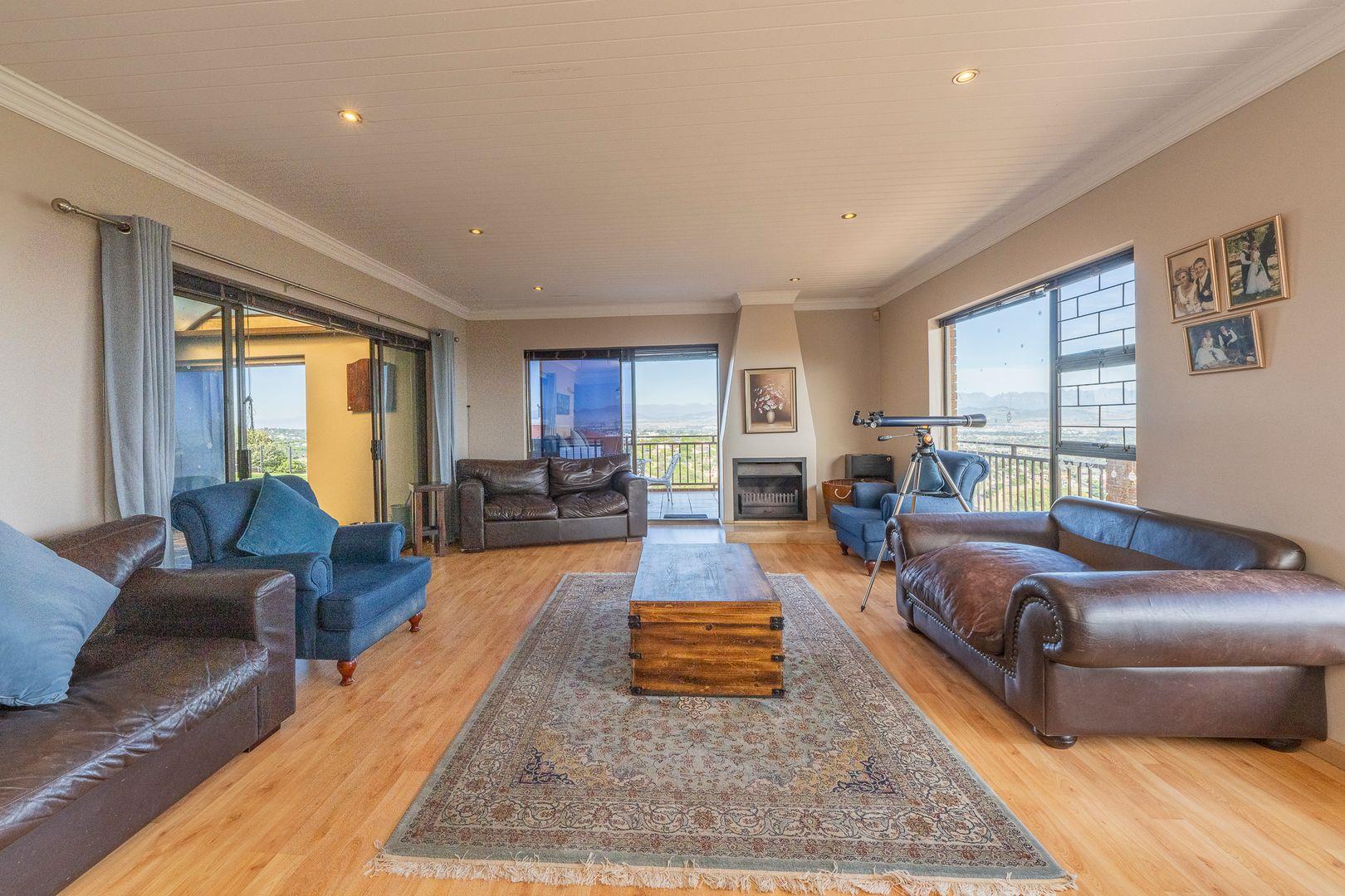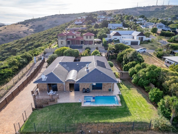 It consists of 5 Bedrooms and 4 Bathrooms. The 5th bedroom could also be used as a separate cottage with its own lounge and kitchenette. Above all this there is also another room for office space with extreme views.
