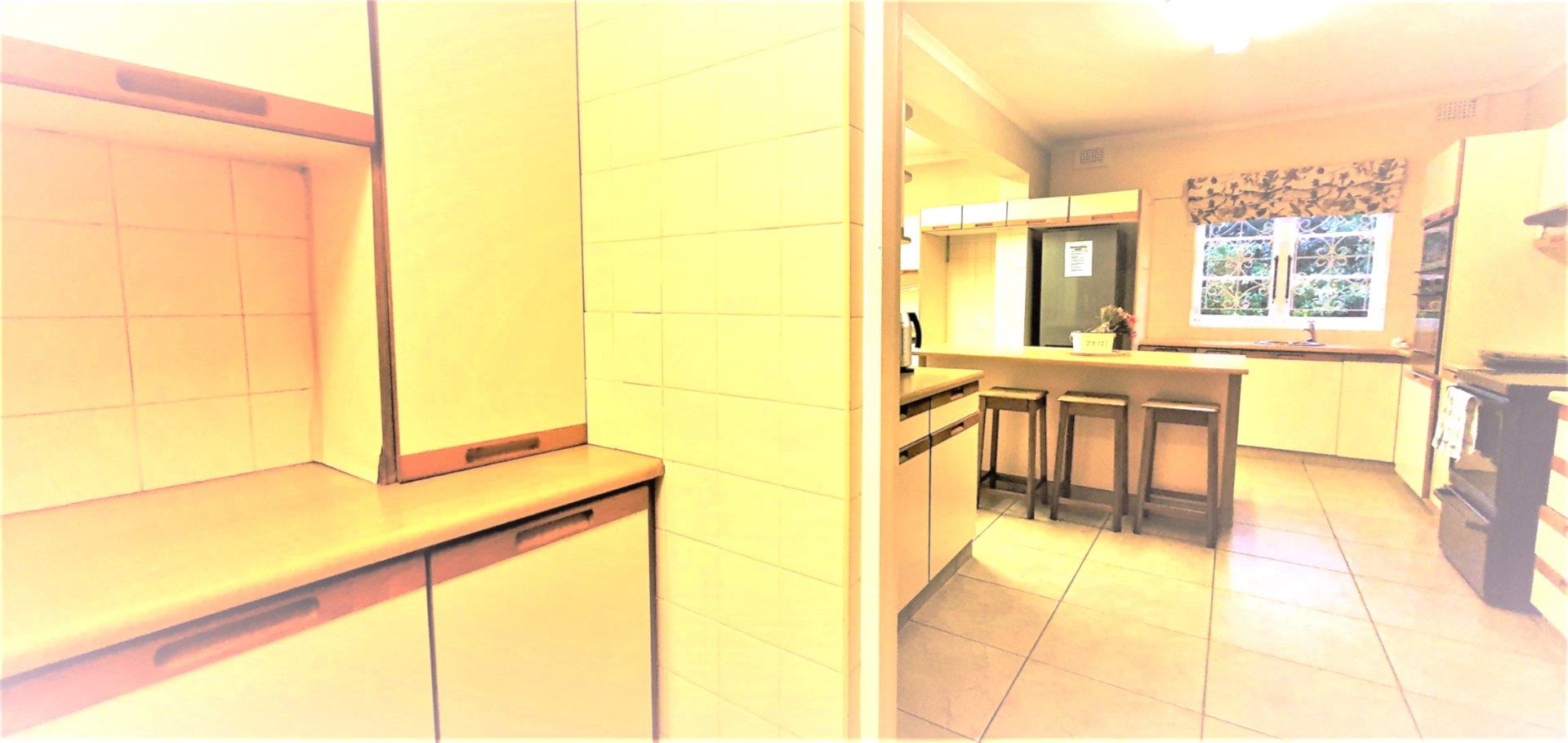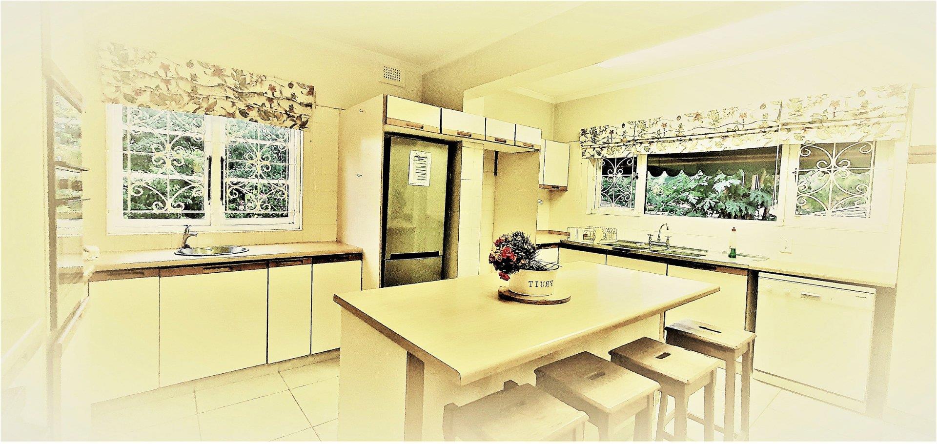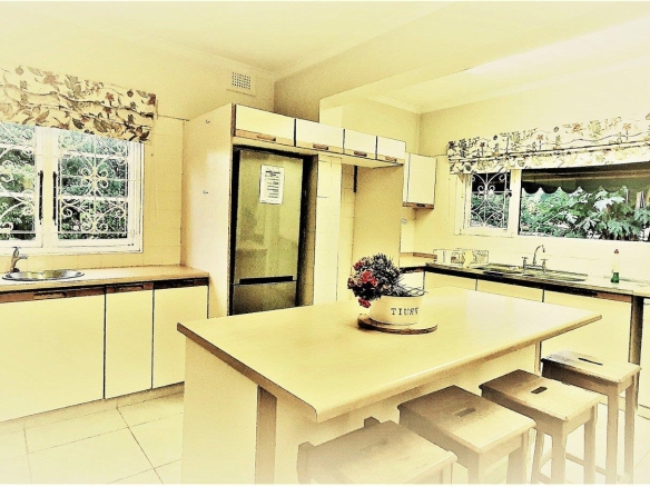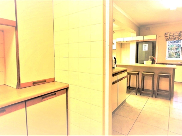 Melamine Kitchen with walk in pantry and scullery and centre consol,