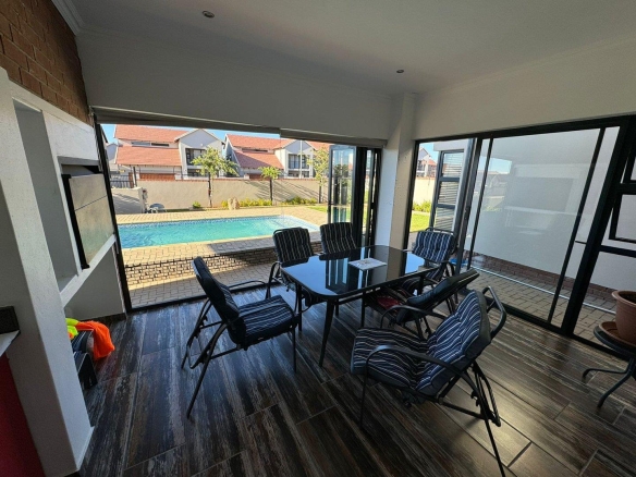 Escape to this architect-designed masterpiece in the prestigious Wild Olive Estate. A seamless blend of contemporary style and effortless living, this double-story haven awaits those seeking ultimate luxury. Upon entry, be captivated by the expansive open-plan living area, gracefully flowing into a braai room and inviting outdoor space – perfect for family gatherings and alfresco entertaining.