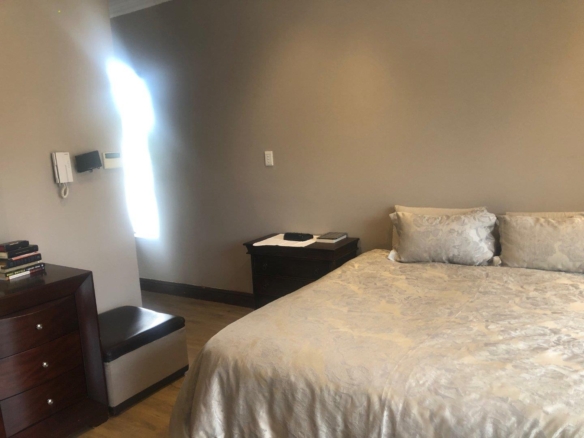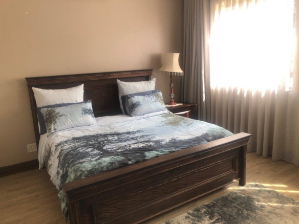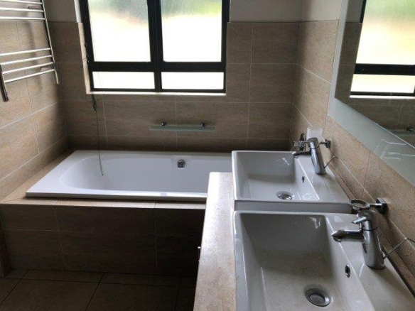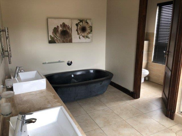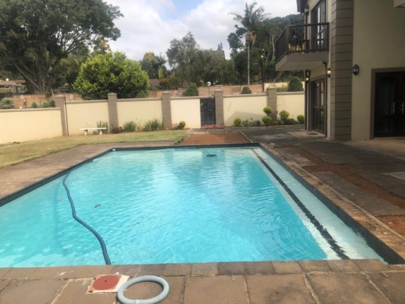 Style and elegance for the large extended family. Double storey home located in Hillcrest Park. Open plan lounge and dining area. Kitchen is fitted with ample cupboard space. Separate scullery. The home boasts 5 bedrooms and 3 bathrooms. Staff accommodation. Double garages. Built in braai and pool. Electricity is prepaid, water billed monthly. The home is fully fenced off and pets are allowed.