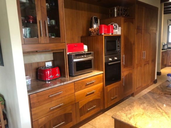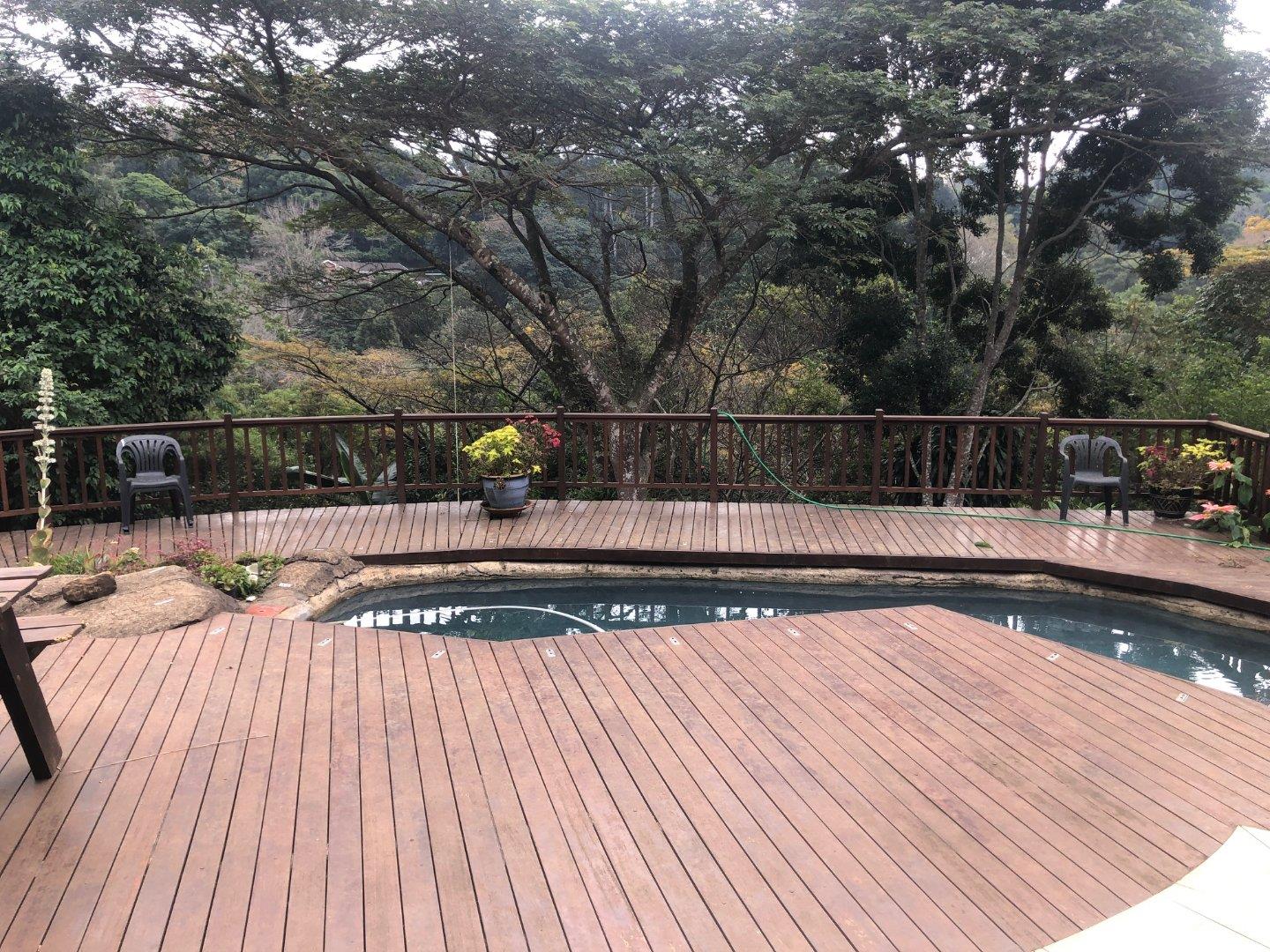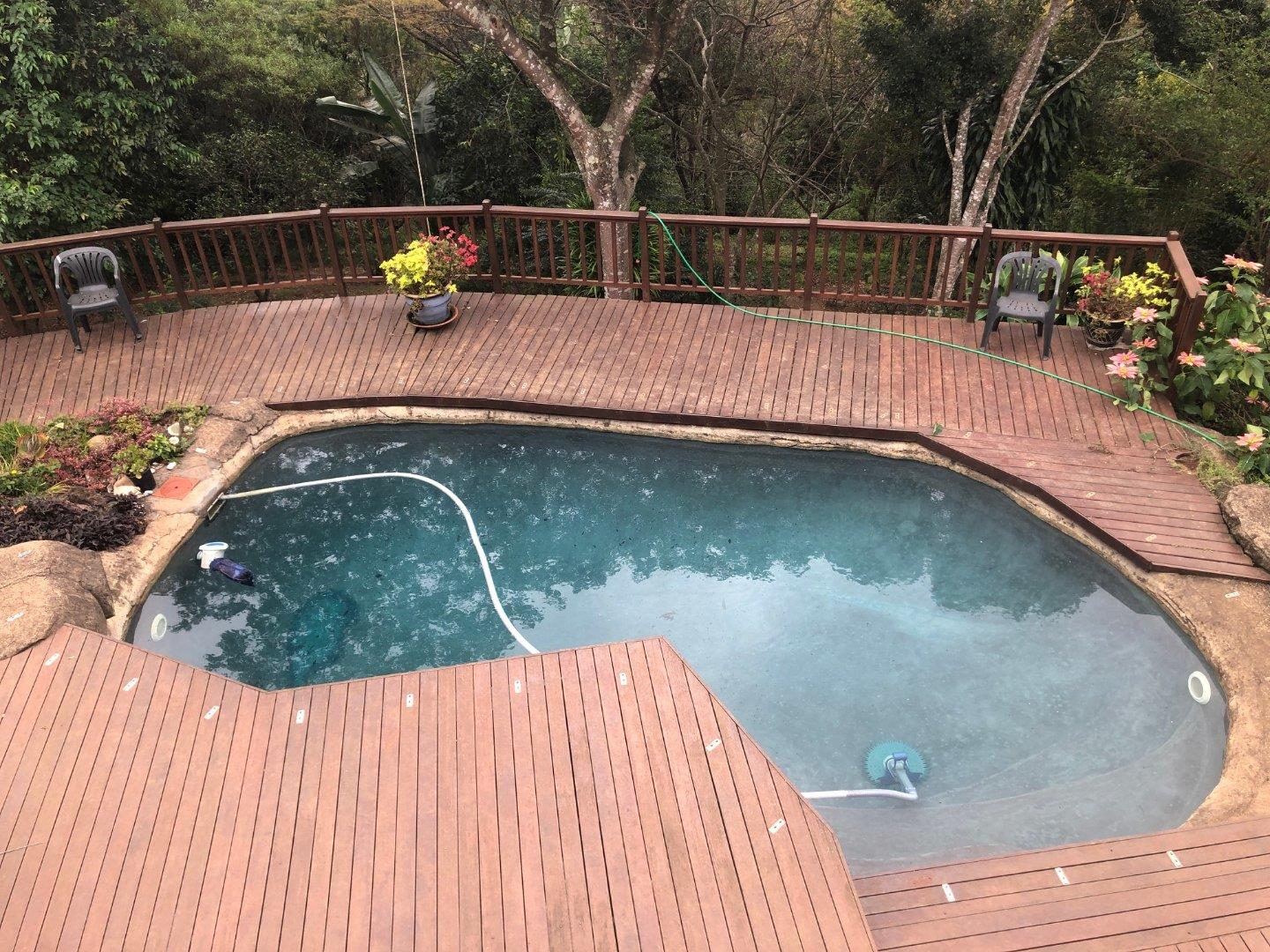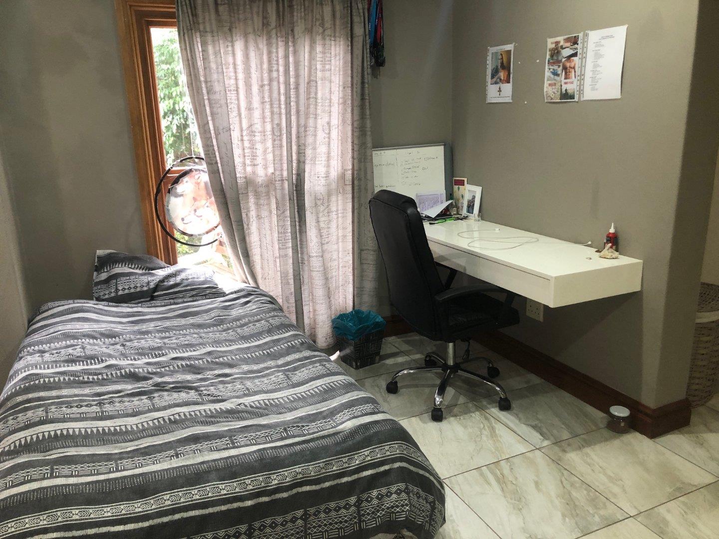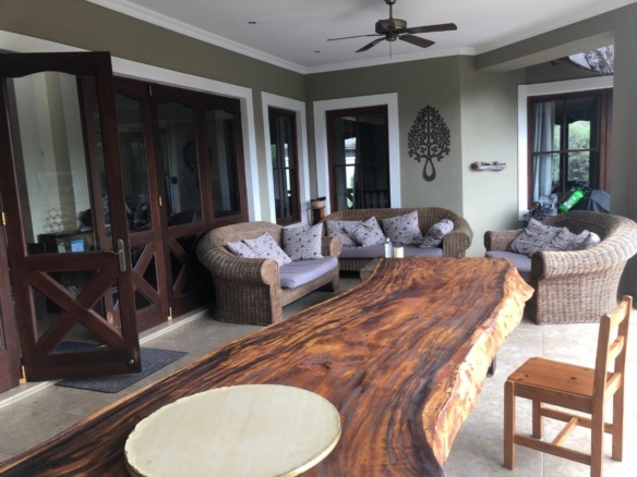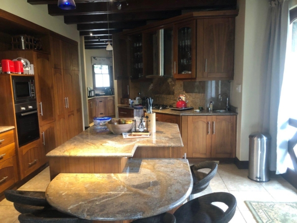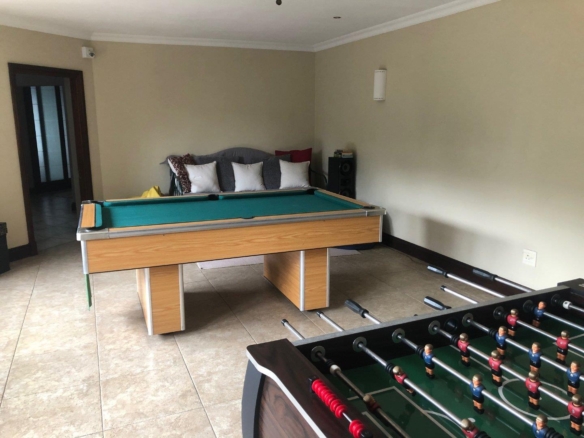 Spacious family home in Everton to rent. This townhouse is situated in a small complex in a serene area. 5 Bedrooms and 3 Bathrooms ensuite. Lounge with a cosy fireplace leading out to a balcony overlooking the sparkling pool. Magnificent kitchen with a built in fridge and the finishes are immaculate. Separate scullery. Downstairs is an entertainment area with a games room. Dining area. 3 Garages and cottage with a kitchenette, small lounge, bedroom and bathroom. Indigenous garden. 2 Loft rooms can be utilised for kiddies’ TV rooms. Pets are allowed. Double deposit required.