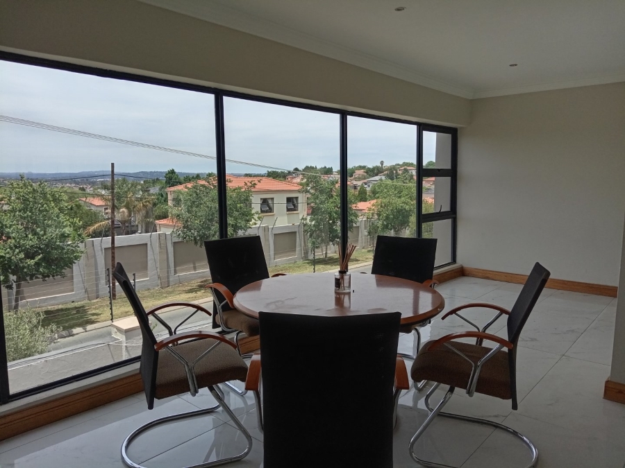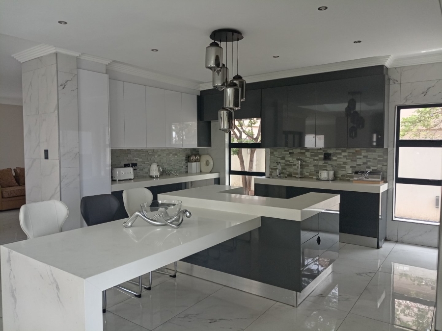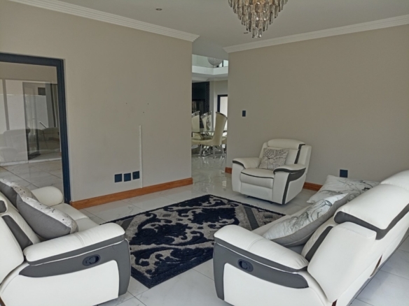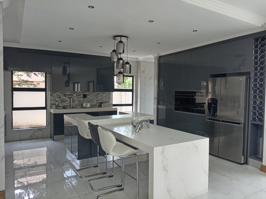 Prepare to be captivated by this extraordinary 6-bedroom, 6-bathroom double-story masterpiece nestled within the prestigious Kyalami Downs. This palatial residence boasts an unparalleled level of luxury, featuring exquisite finishes, expansive living spaces, and a captivating outdoor oasis. Step inside and be greeted by an aura of sophistication. The grand entrance sets the stage for the opulence that awaits. Discover three inviting lounges, each offering a distinct ambiance for relaxation and entertainment. Imagine hosting lavish gatherings in the elegant formal lounge, enjoying intimate moments with loved ones in the cozy family room, or unwinding with a good book in the serene reading nook. The heart of this home is undoubtedly the magnificent kitchen. A culinary enthusiast’s dream, it features top-of-the-line appliances, ample counter space, and a central island perfect for both meal preparation and casual dining. Adjacent to the kitchen, a spacious dining room provides the ideal setting for unforgettable feasts. But the true magic lies outdoors. Step onto the expansive deck and be mesmerized by the sparkling pool, inviting you to take a refreshing dip on a warm summer day. The generous balcony overlooking the picturesque surroundings offers breathtaking views, creating the perfect backdrop for al fresco dining and leisurely evenings under the stars. This exceptional property offers an unparalleled lifestyle within the exclusive Kyalami Downs community. With its luxurious amenities, prime location, and unmatched elegance, this home is truly a once-in-a-lifetime opportunity. Option to Let Furnished – R65 000 ( With a double deposit) Water billed upon usage; Electricity is prepaid.