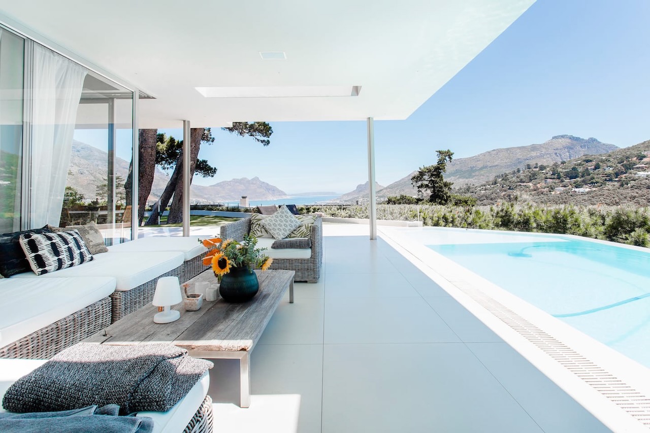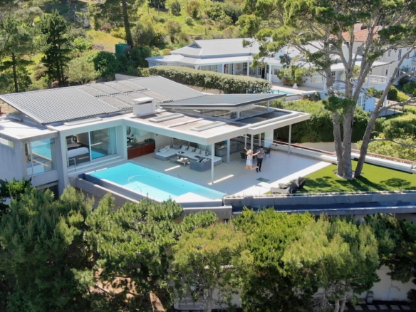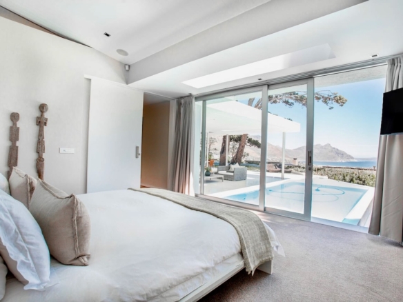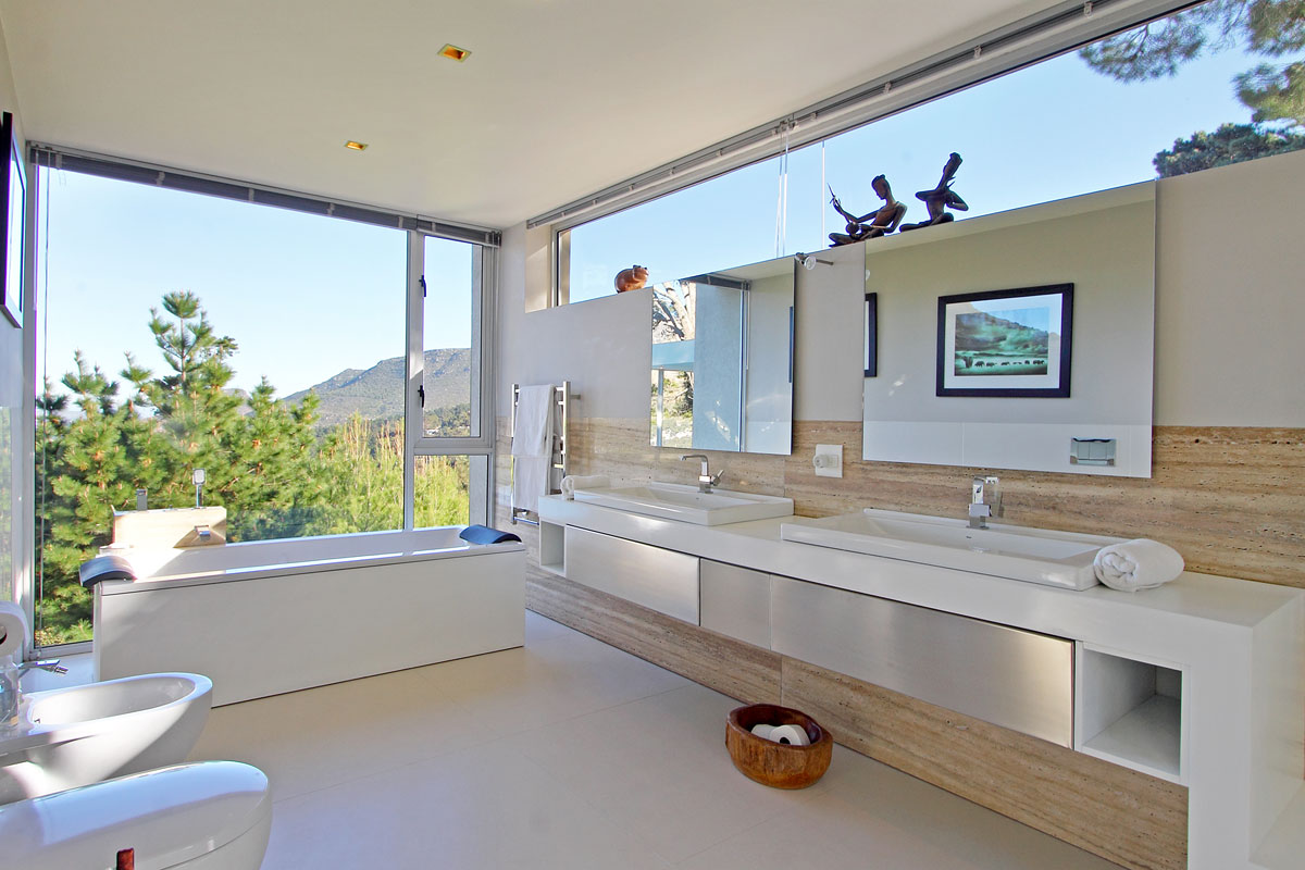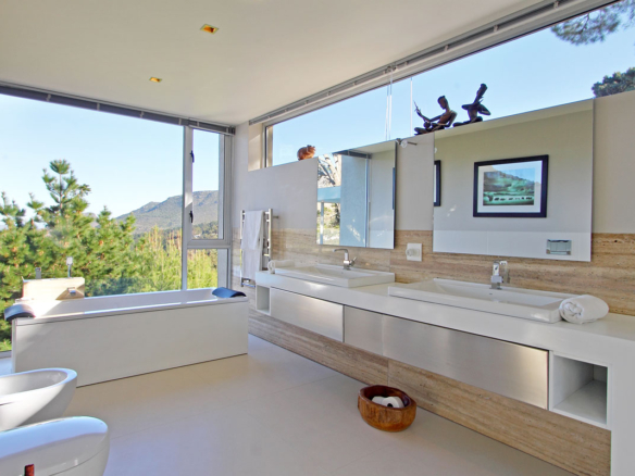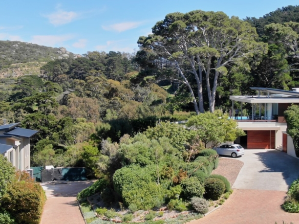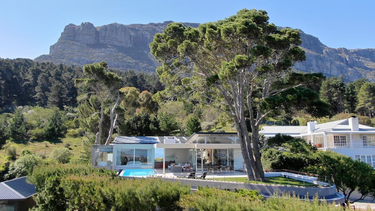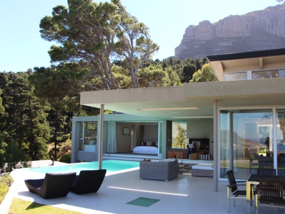 It offers a fantastic panoramic view of Hout Bay and Noordhoek Beach in the front, embedded in an incomparable mountain landscape and in the back, of the 1000m high Table Mountain surrounded by pine trees..