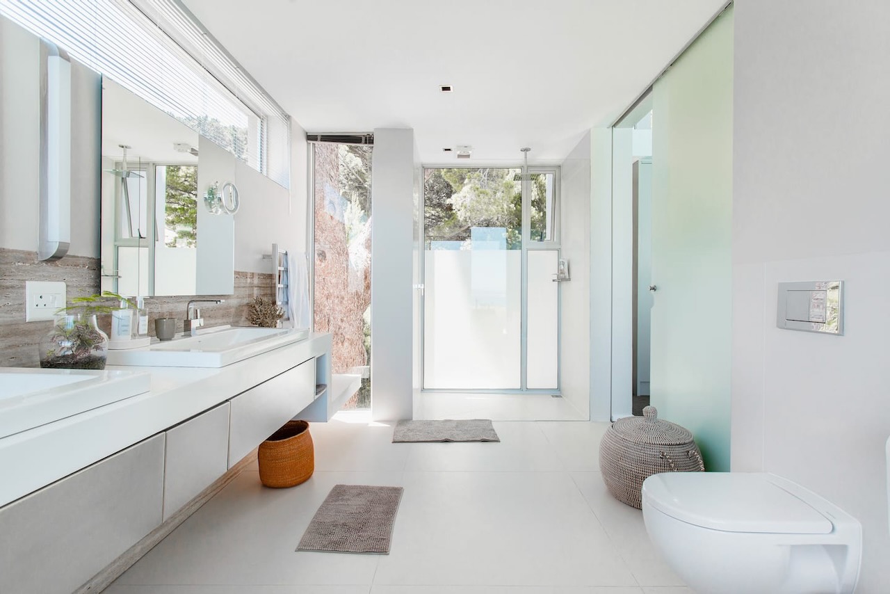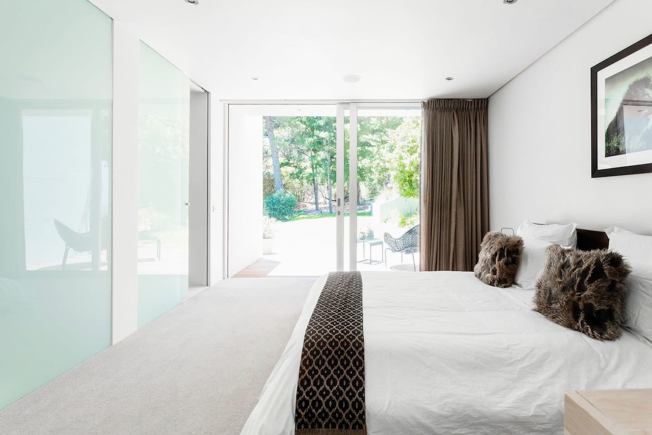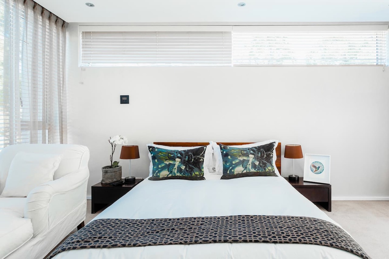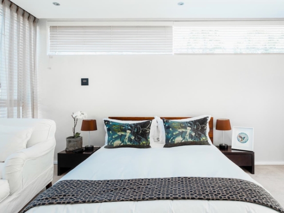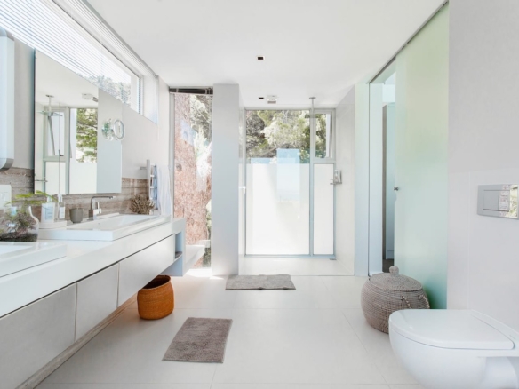 The house has a main bedroom on the 1st floor overlooking the pool and the bay. The stairs lead you to 2 double bedrooms with queen-size beds and an ensuite bathrooms, that can be used as children’s or guest rooms.