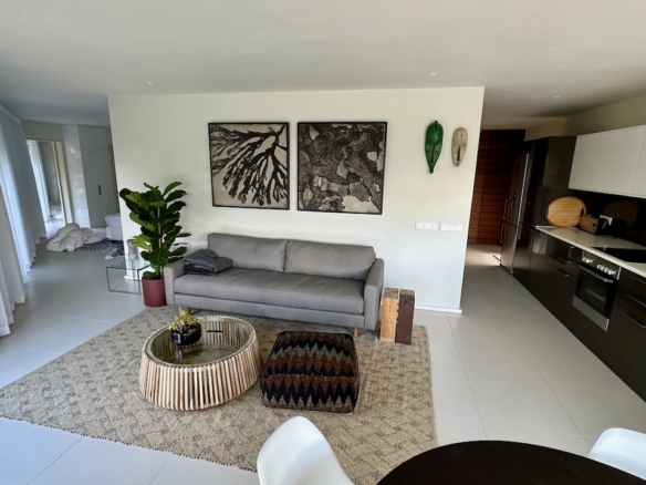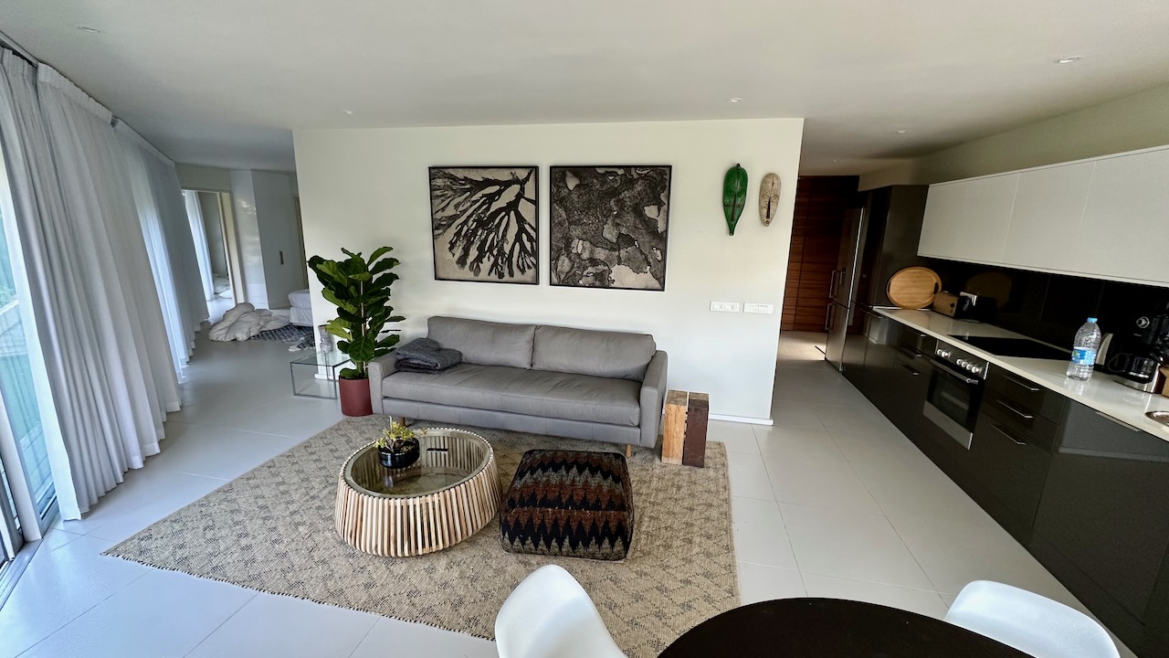 You can also enjoy the unique view in the lower area of the house. Here is a second, open and fully equipped kitchen with dishwasher and washing machine, an open living-dining area, 2 bedrooms, a bathroom and another small terrace with a mini pool. This area offers e.g. for another family, bigger children or friends a pleasant opportunity for privacy and independence.