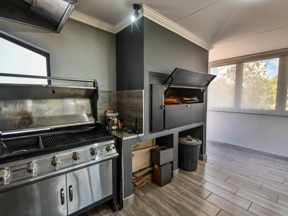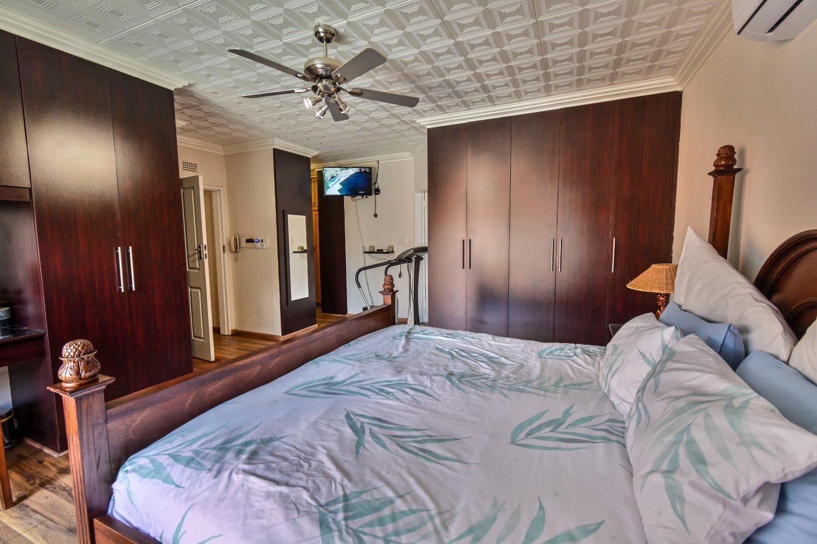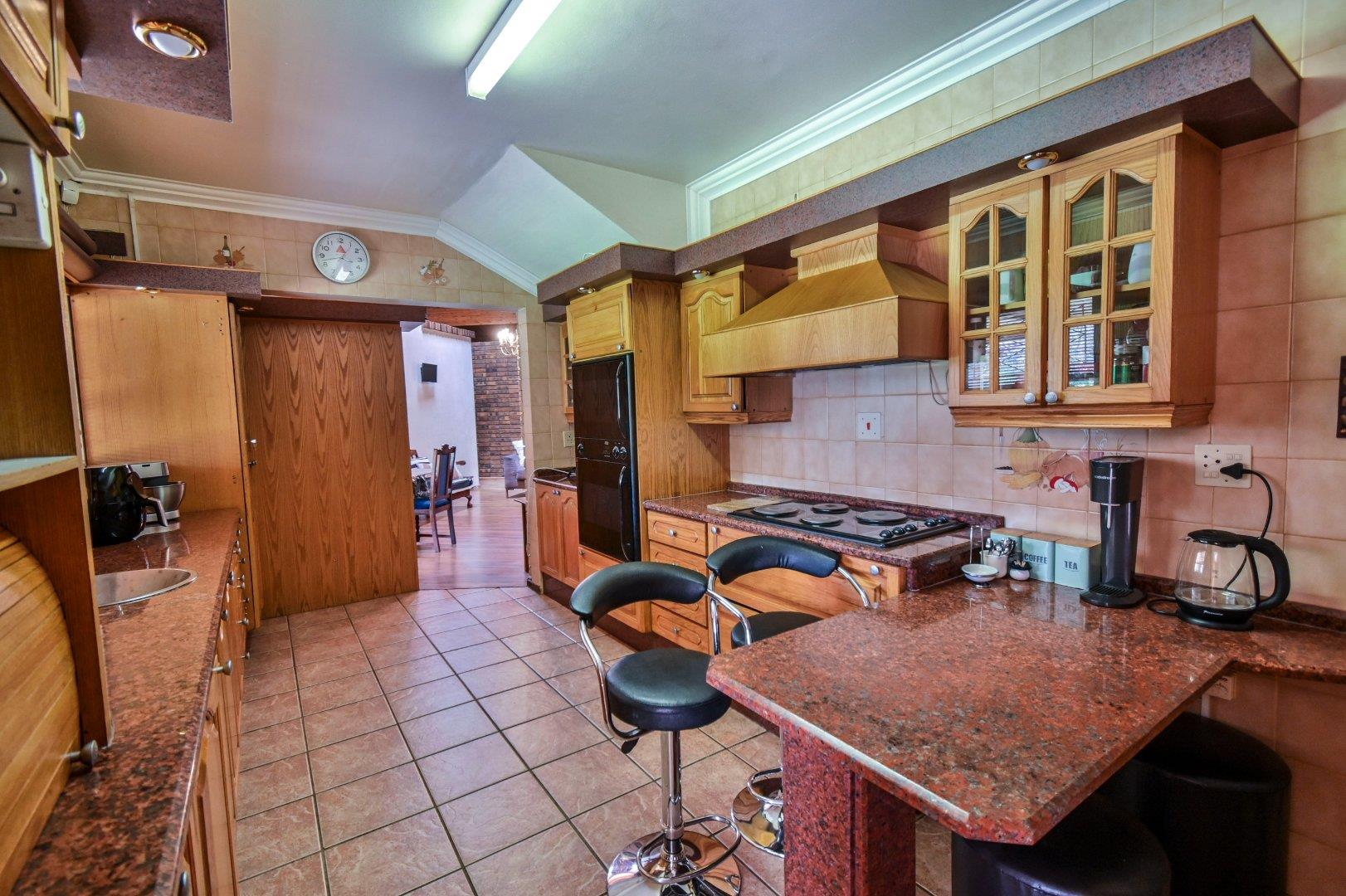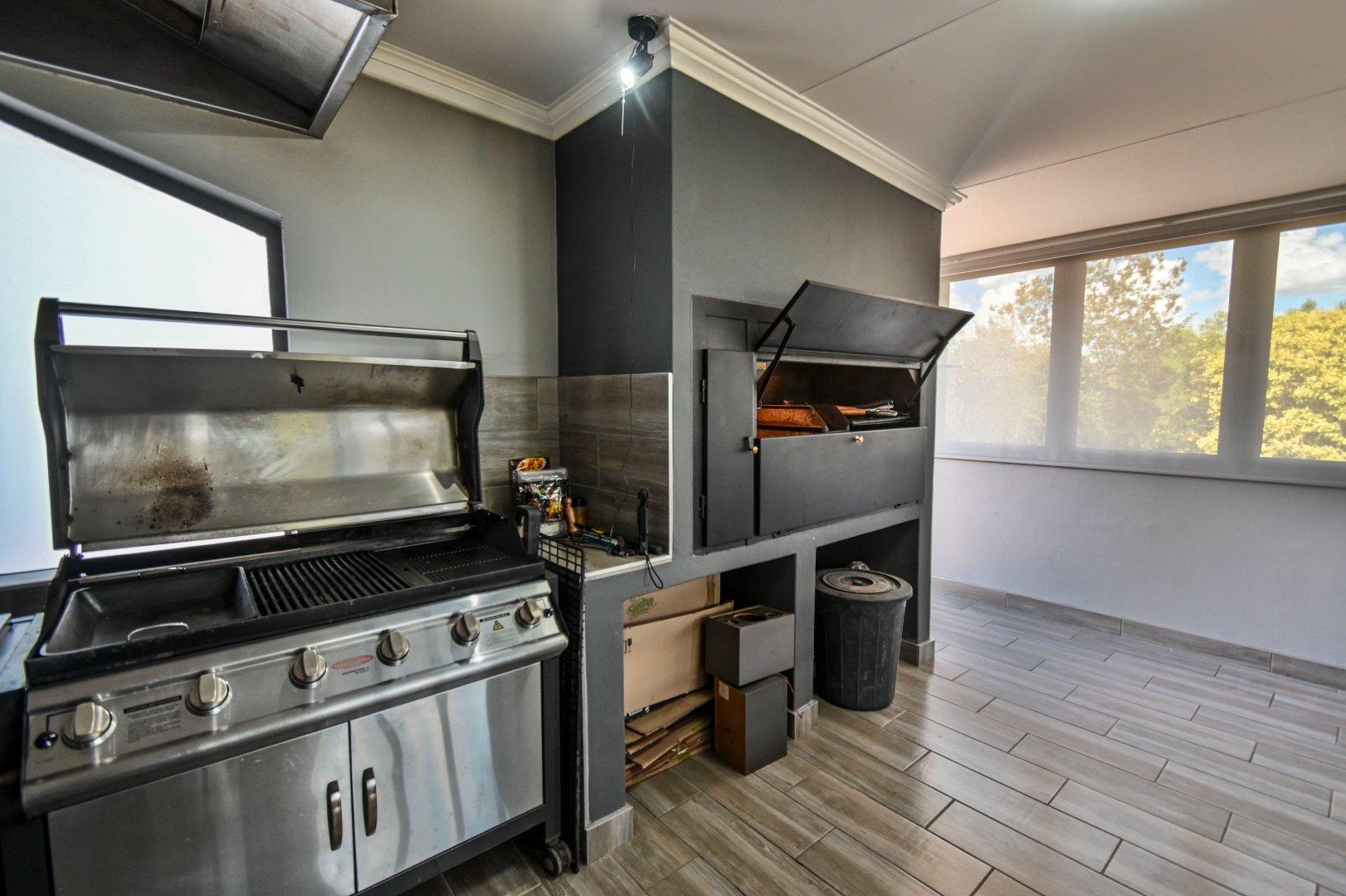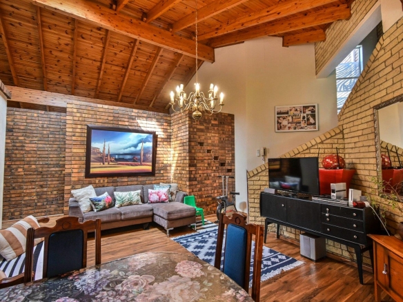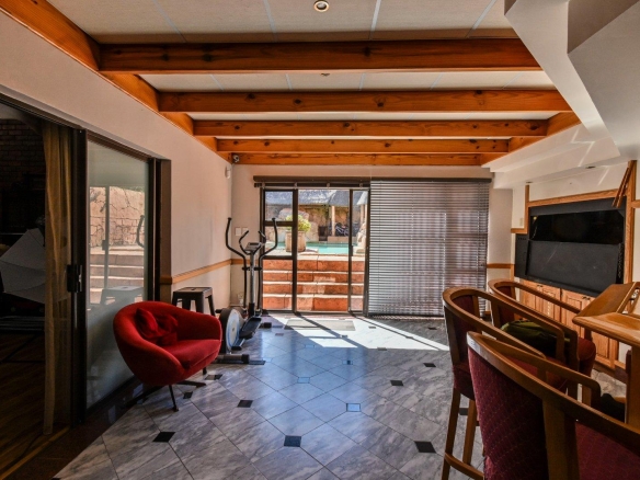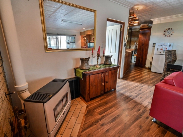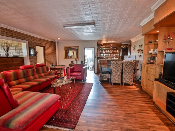 Ascend from the open plan family TV room and dining area to the upper level, where the treasure unfolds, offering yet another spacious living area with an anthracite fireplace and dining space, a fifth bedroom with laminated flooring. The 6th bedroom with a convenient en-suite shower, toilet, and basin. A separate guest toilet with basin, built-in bar, and a sizable indoor braai area. This amazing upstairs area can serve as a lucrative income-generating flat, boasting a separate outside staircase.