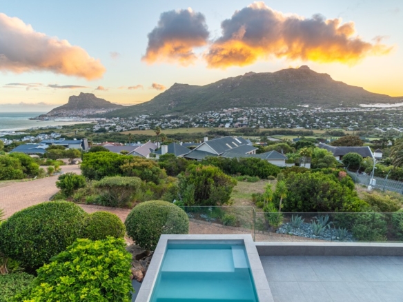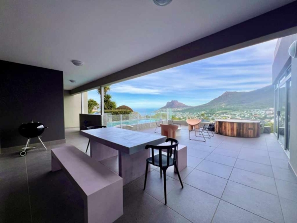 Step into refined elegance in the heart of Hout Bay at the exclusive Berg en Dal Estate. This expansive home captures the very best of coastal and mountain living, boasting panoramic views across Hout Bay, the Kommetjie lighthouse, and the dramatic surrounding peaks.