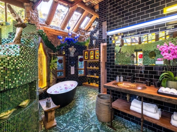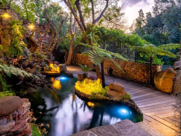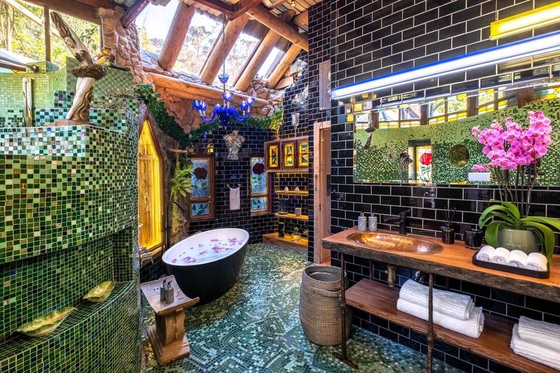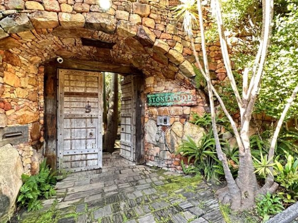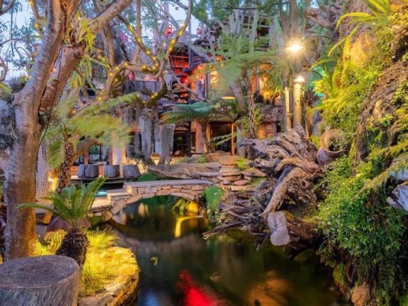 As you step inside, you’ll find yourself surrounded by lush, mature gardens, intricate masonry, winding staircases, and tranquil aquatic features, creating an atmosphere of unparalleled peace and beauty. Crafted by an artistic visionary, this multi-leveled residence is a feast for the eyes, designed with precision and a keen sense for details.