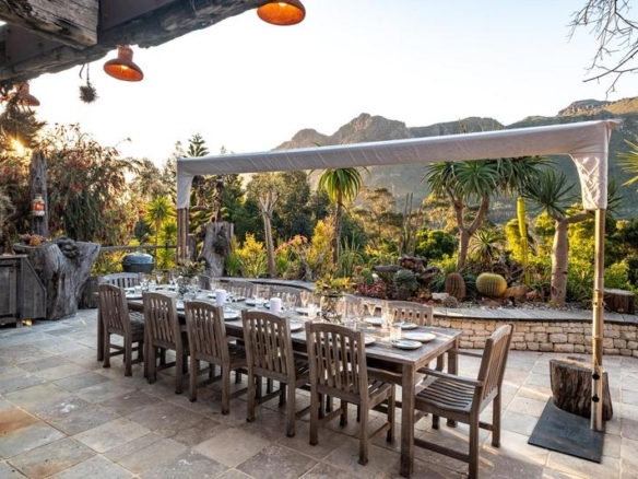 Situated only a short distance from Constantia Nek, this estate, boasting an area of nearly 3,000 square meters, is a secluded haven nestled against a backdrop of awe-inspiring mountains.