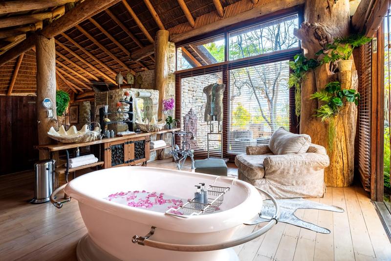 – An exquisite master suite complete with a secluded sitting corner, wardrobe space, and an attached bathroom that opens to a patio, featuring a luxurious jacuzzi and an external private shower.