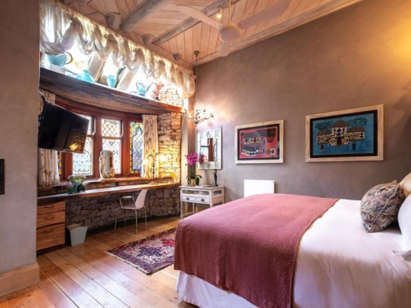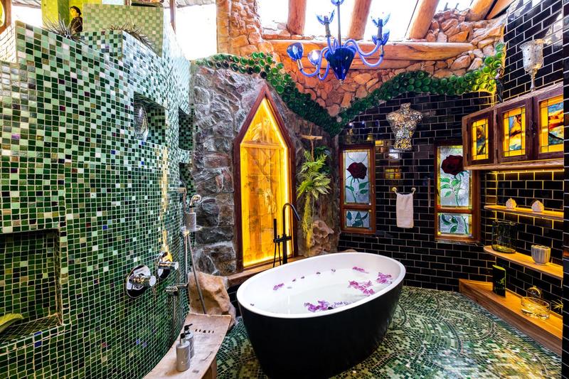 – A spiral stairway leads you to an awe-inspiring rooftop, granting panoramic vistas of the surrounding mountains.