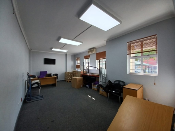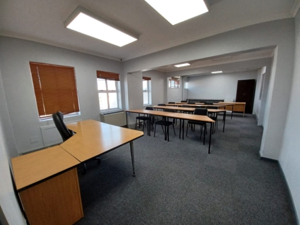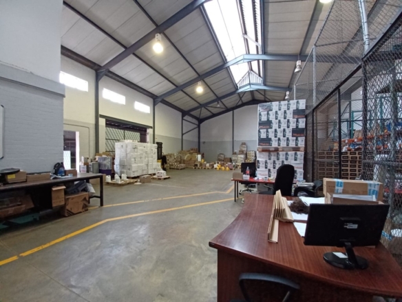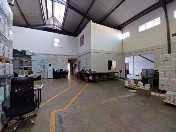 The property comprises a substantial warehouse area with a large roller shutter door, facilitating convenient loading and offloading operations. The warehouse boasts a high ceiling of 5-6 metres, allowing for efficient storage and movement of goods. Natural light permeates the space, creating a pleasant working environment, while three-phase power ensures compatibility with heavy machinery and industrial operations.