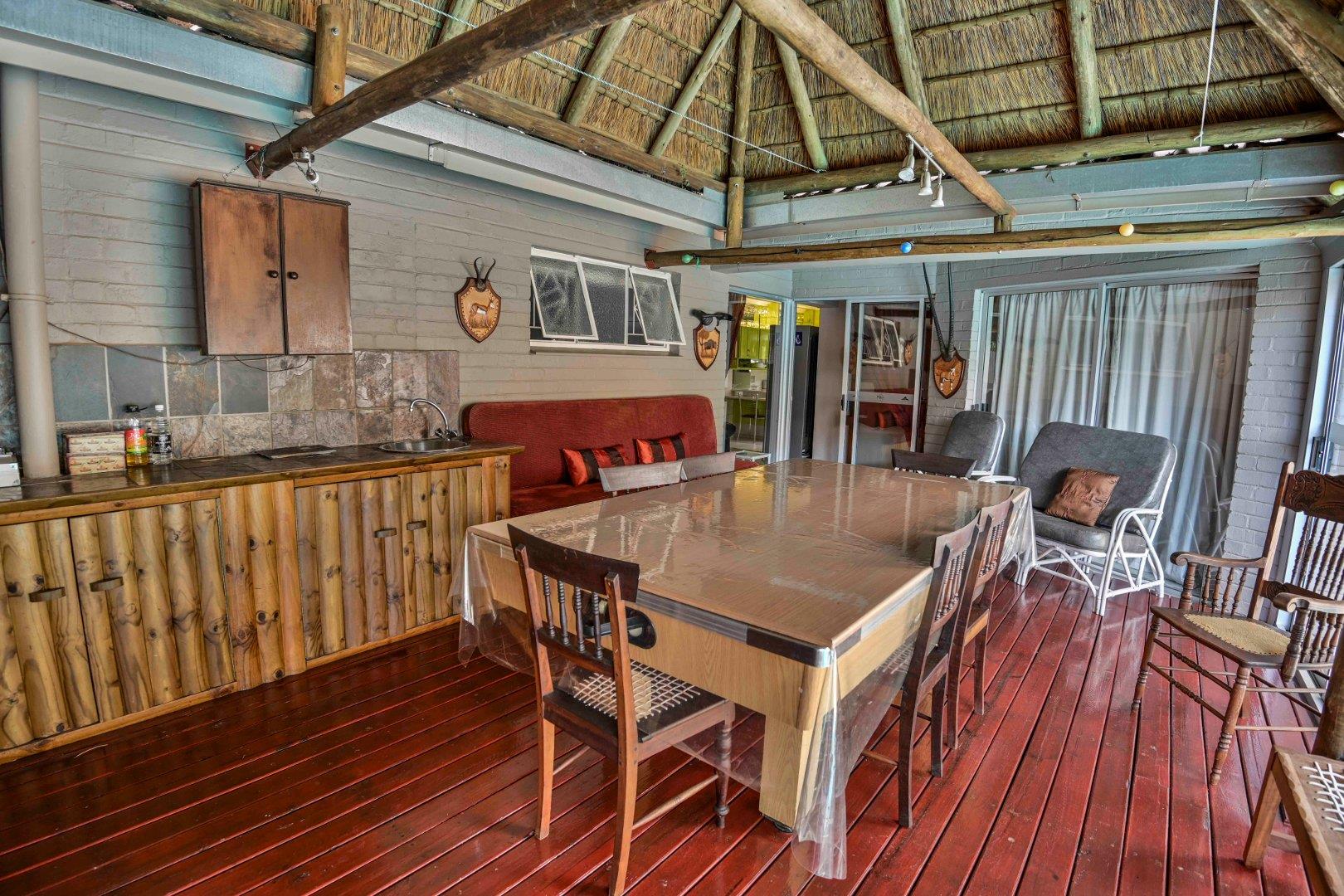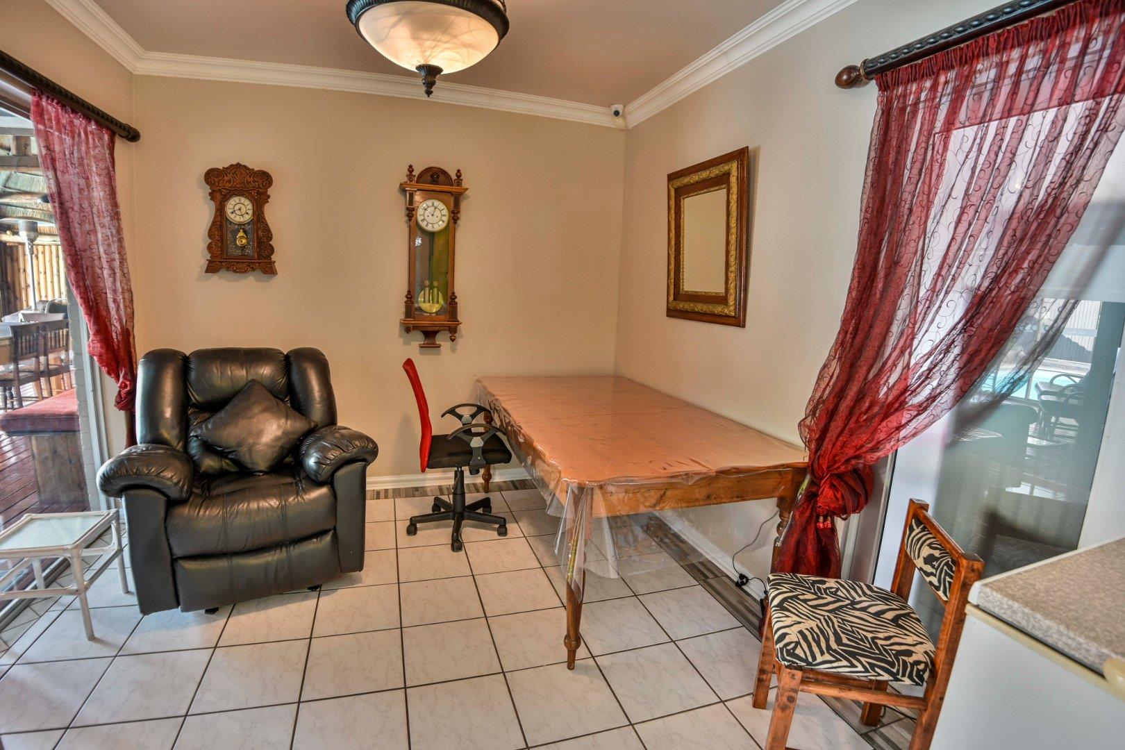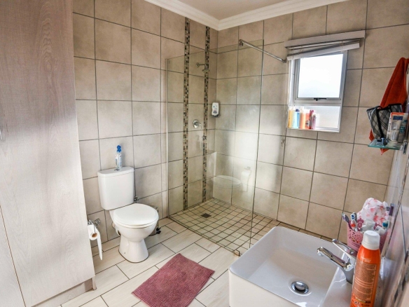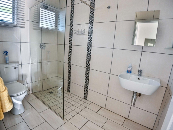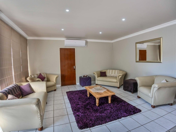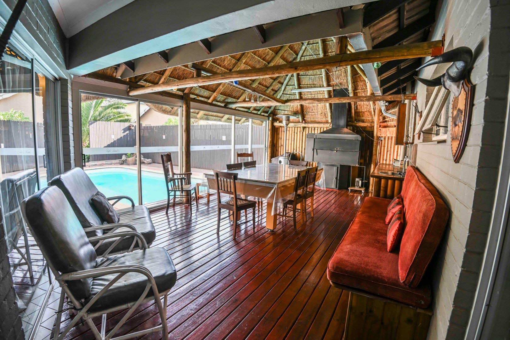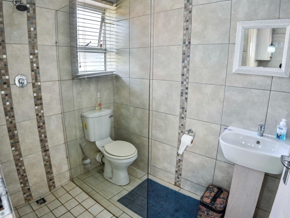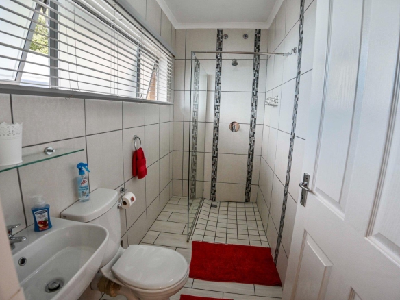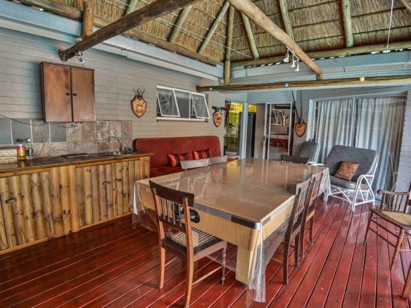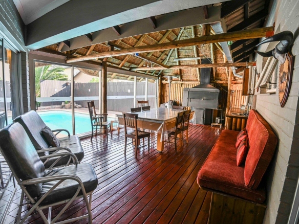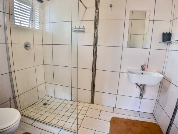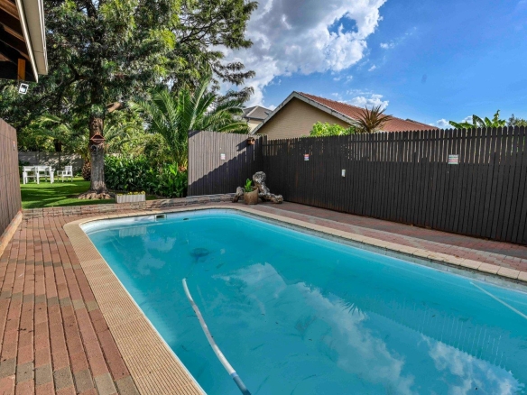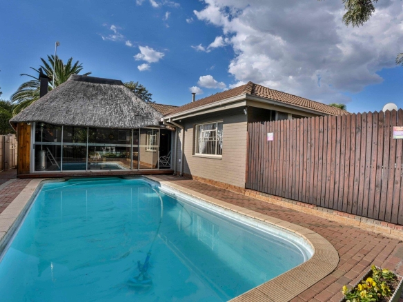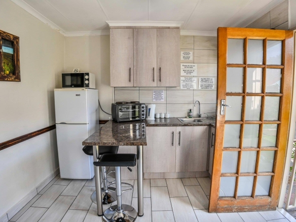 Further enhancing its appeal, the guesthouse includes amenities such as a refreshing swimming pool, a charming lapa with a built-in braai, and the added convenience of a borehole for water supply. Practical considerations extend to accommodation for night staff, with a staff bedroom and separate toilet and shower facilities provided.
