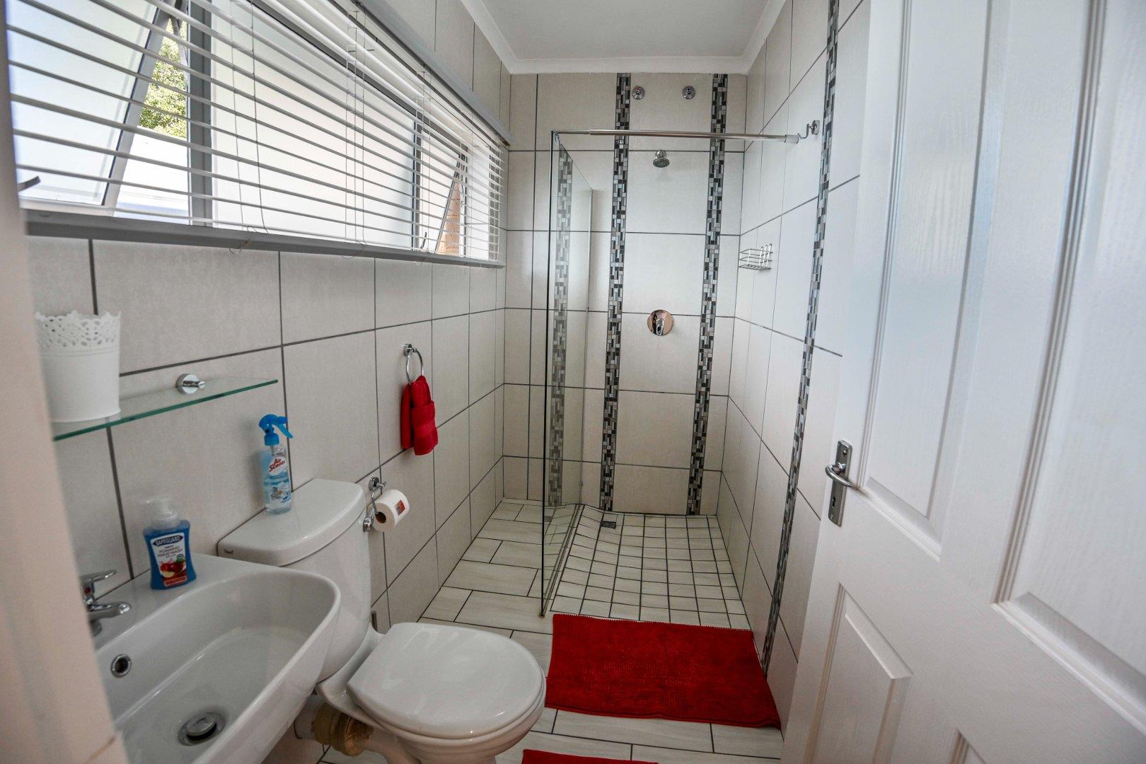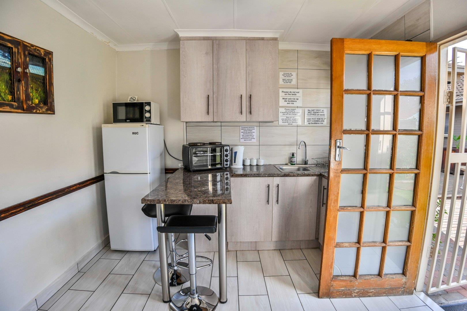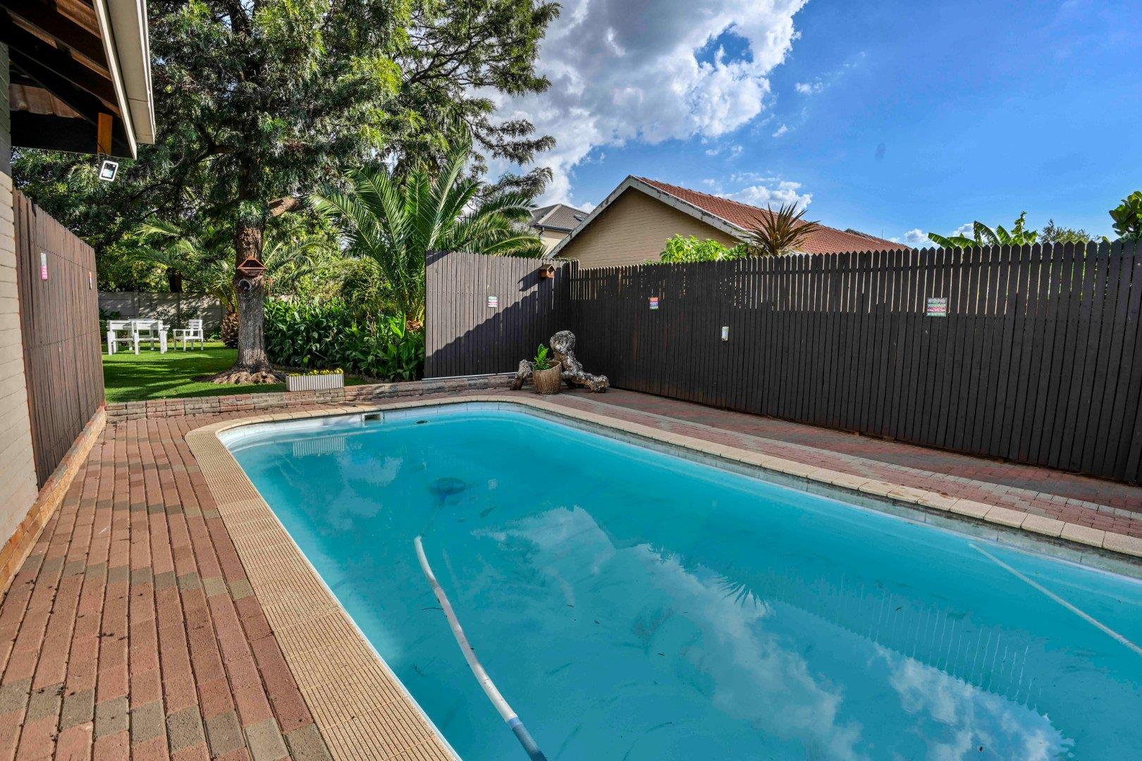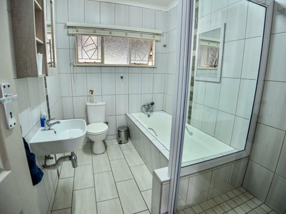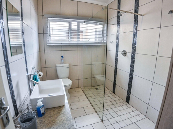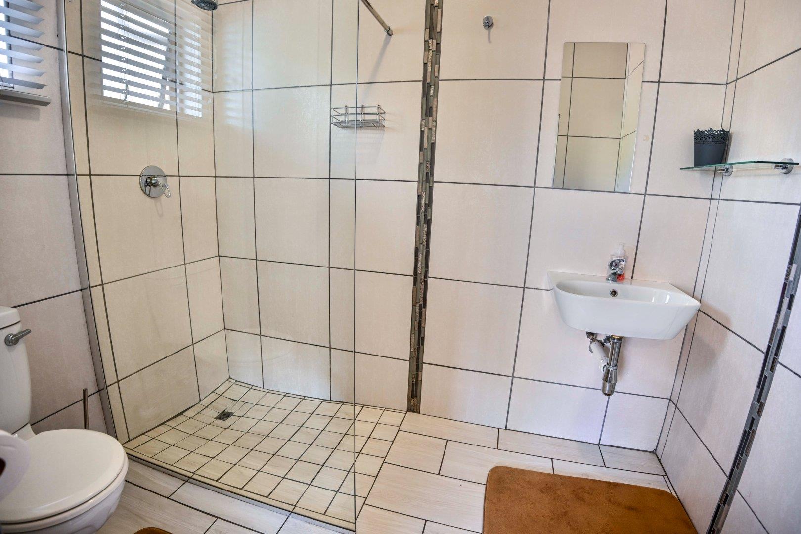 Further enhancing its appeal, the guesthouse includes amenities such as a refreshing swimming pool, a charming lapa with a built-in braai, and the added convenience of a borehole for water supply. Practical considerations extend to accommodation for night staff, with a staff bedroom and separate toilet and shower facilities provided.