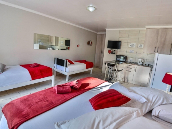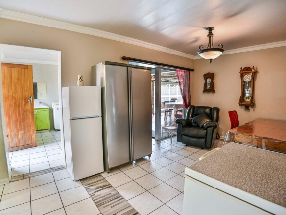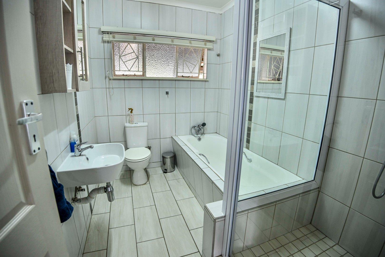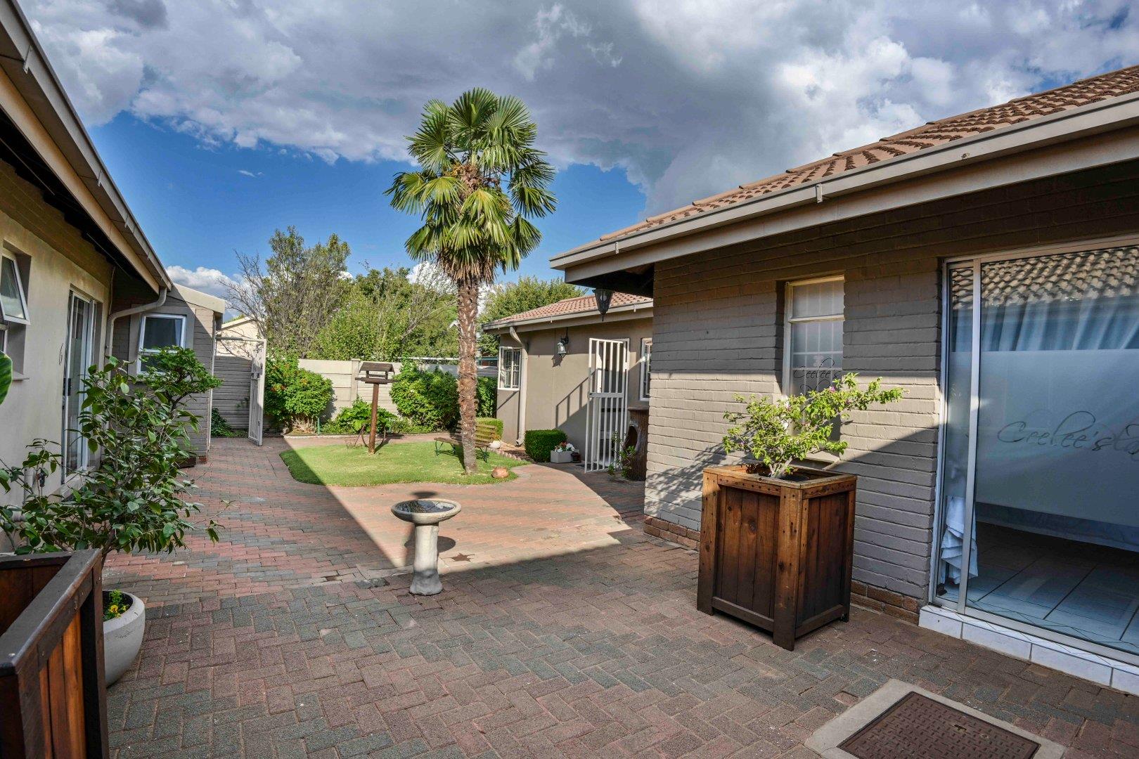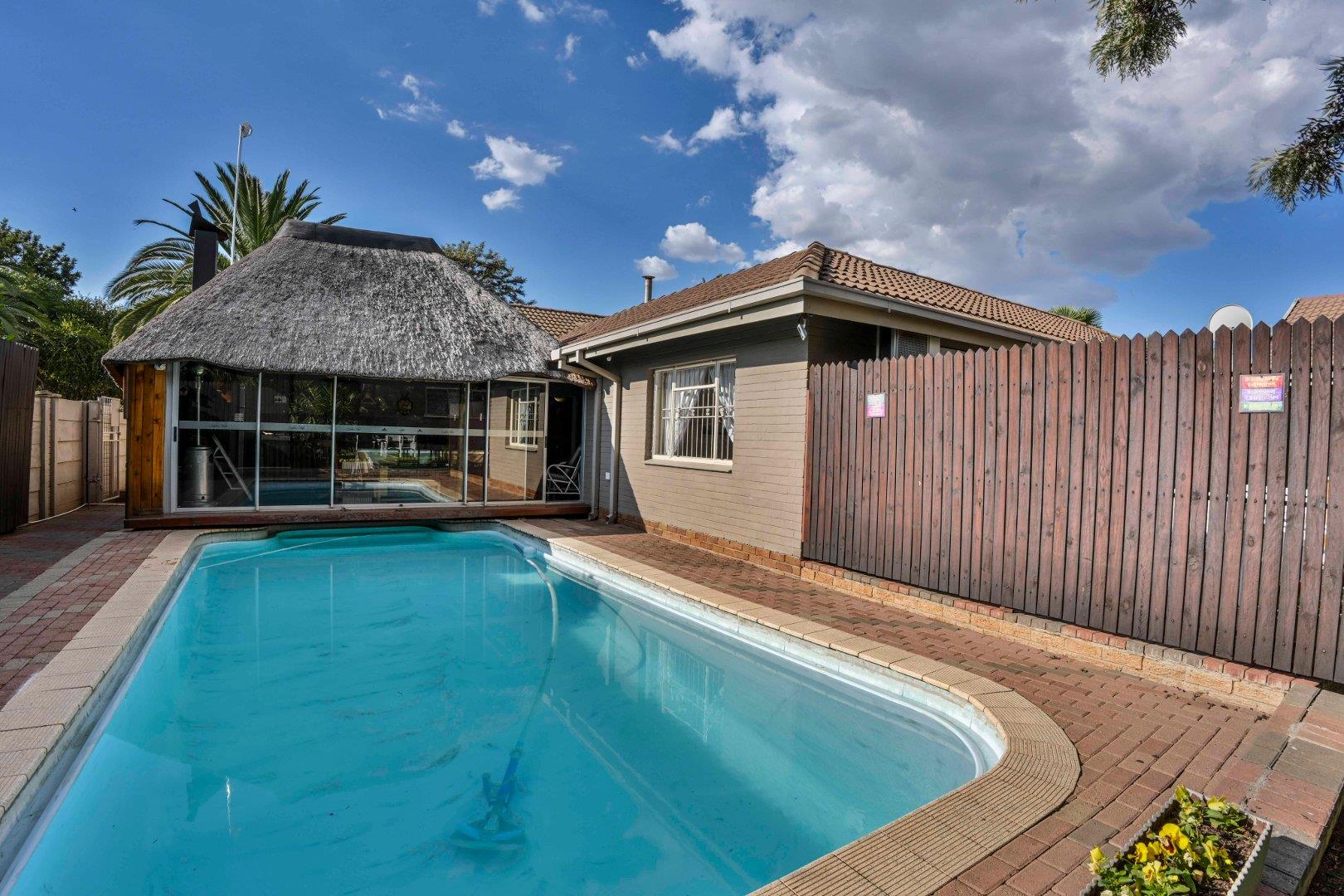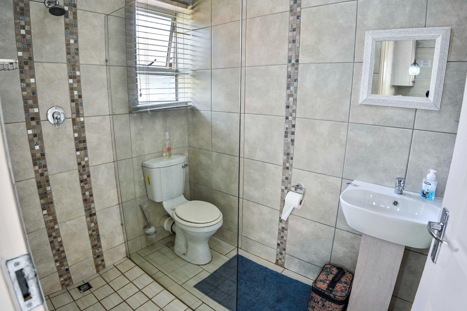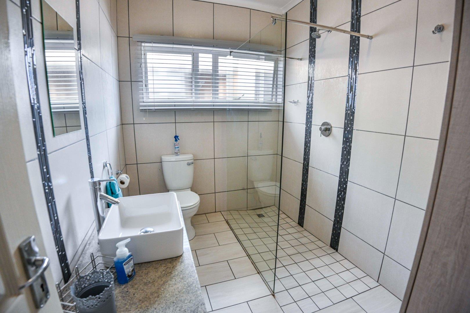 Further enhancing its appeal, the guesthouse includes amenities such as a refreshing swimming pool, a charming lapa with a built-in braai, and the added convenience of a borehole for water supply. Practical considerations extend to accommodation for night staff, with a staff bedroom and separate toilet and shower facilities provided.