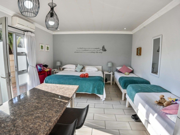 Featuring eight spacious rooms, each adaptable as double or single occupancy, and complete with its own en-suite bathroom, built-in cupboards, equipped kitchenette and air conditioning, this guesthouse assures comfort and convenience for discerning guests. Additionally, the main home offers a fully equipped kitchen, inviting lounge area, and a dedicated linen room with laundry facilities cater to every aspect of guest comfort.