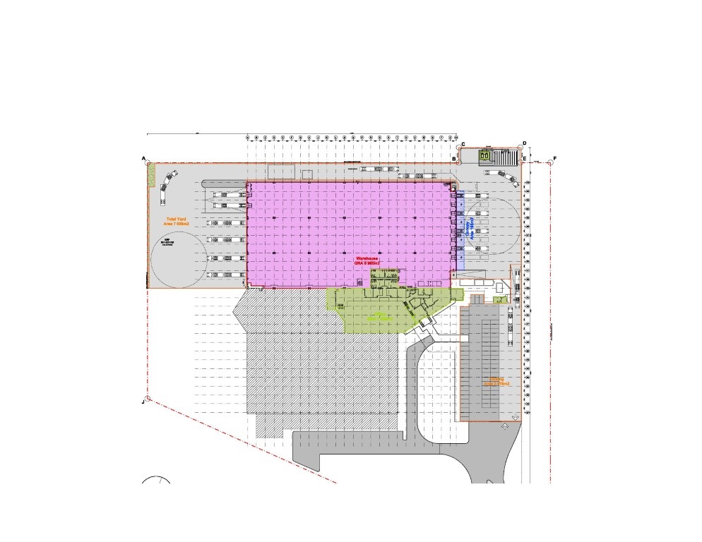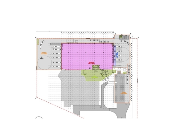 Canopy Coverage: Enhancing functionality, the facility includes 18m deep loading canopies over on-grade doors, covering the full trailer with ample space for forklift maneuverability. Additionally, 7m deep canopies extend over dock leveling loading bays.
